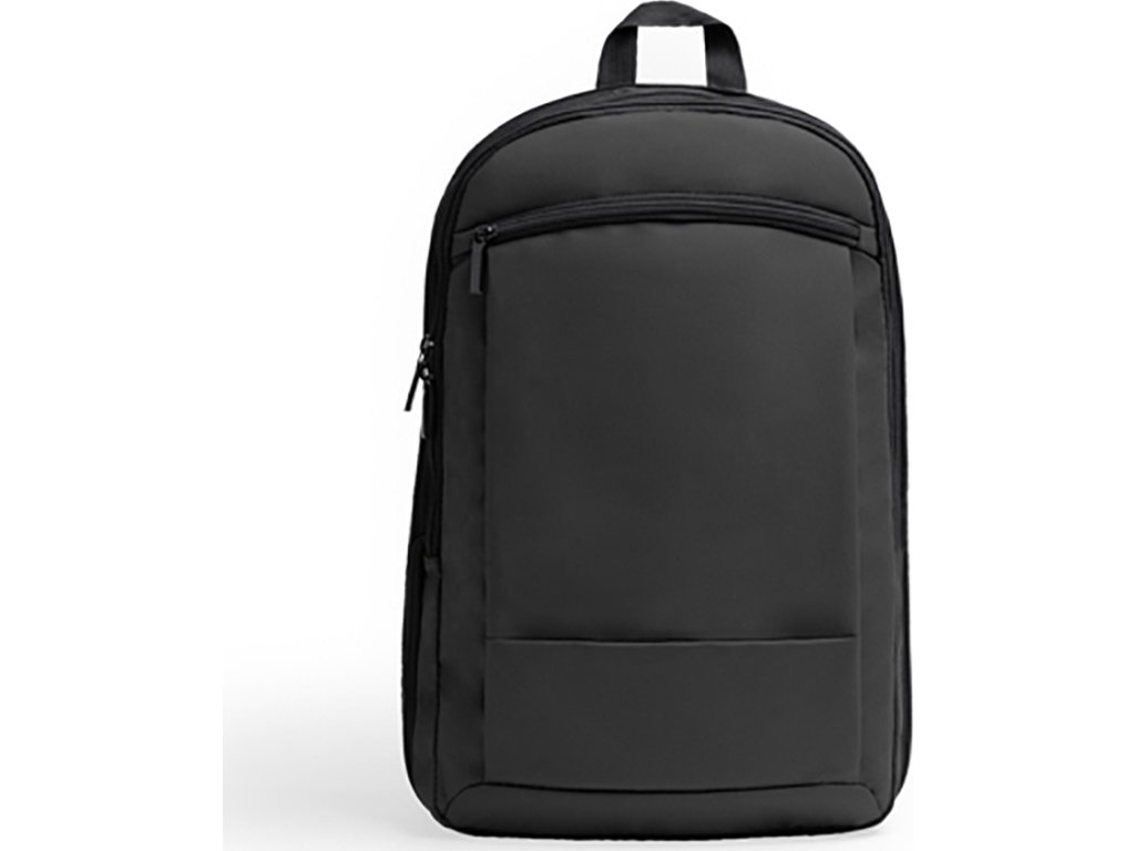 Batoh z PU kůže s jednou hlavní přihrádkou a vnitřní polstrovanou kapsou na 17“ notebook. Obsahuje dvě vnější kapsy se zapínáním na zip, jednu na přední straně a druhou na boku. Rozšiřitelná boční kapsa je vyrobena z recyklovaného polyesteru RPET. Má popruh k připevnění na vozík, který poskytuje pohodlí při cestování. S objemem 15 litrů.