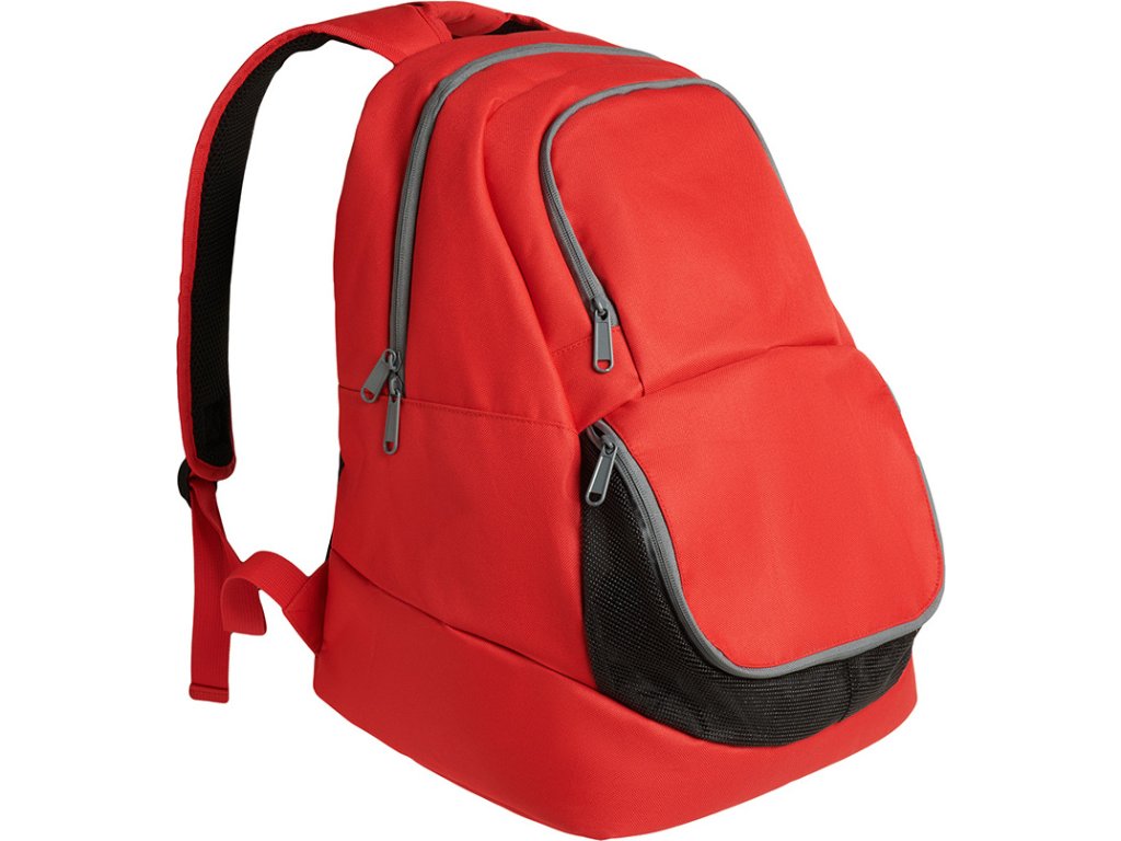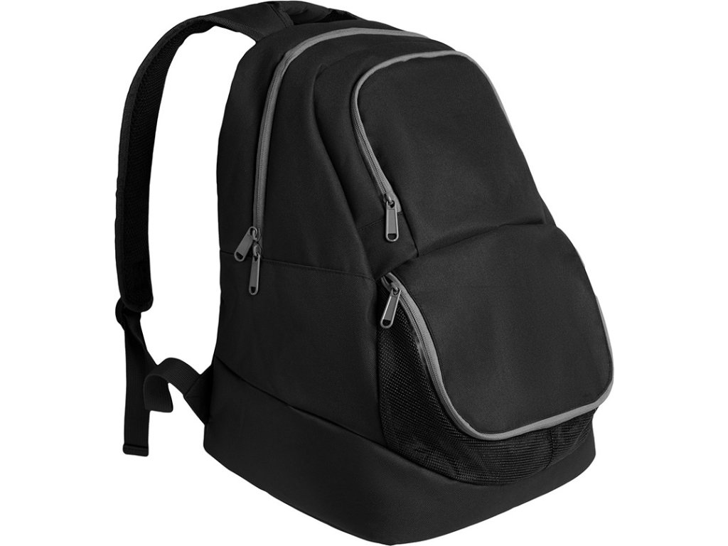 Sportovní batoh ergonomického designu, snadno přizpůsobitelný. Batoh má dvojité zesílené ramenní popruhy, jedno madlo, prošívaná záda a přední přihrádku na boty. Disponuje jednou hlavní kapsou a menší vnější přední kapsou. Batoh má kontrastní zipy v šedé barvě a detaily v černé barvě.