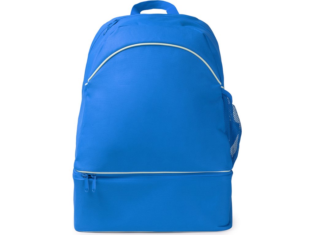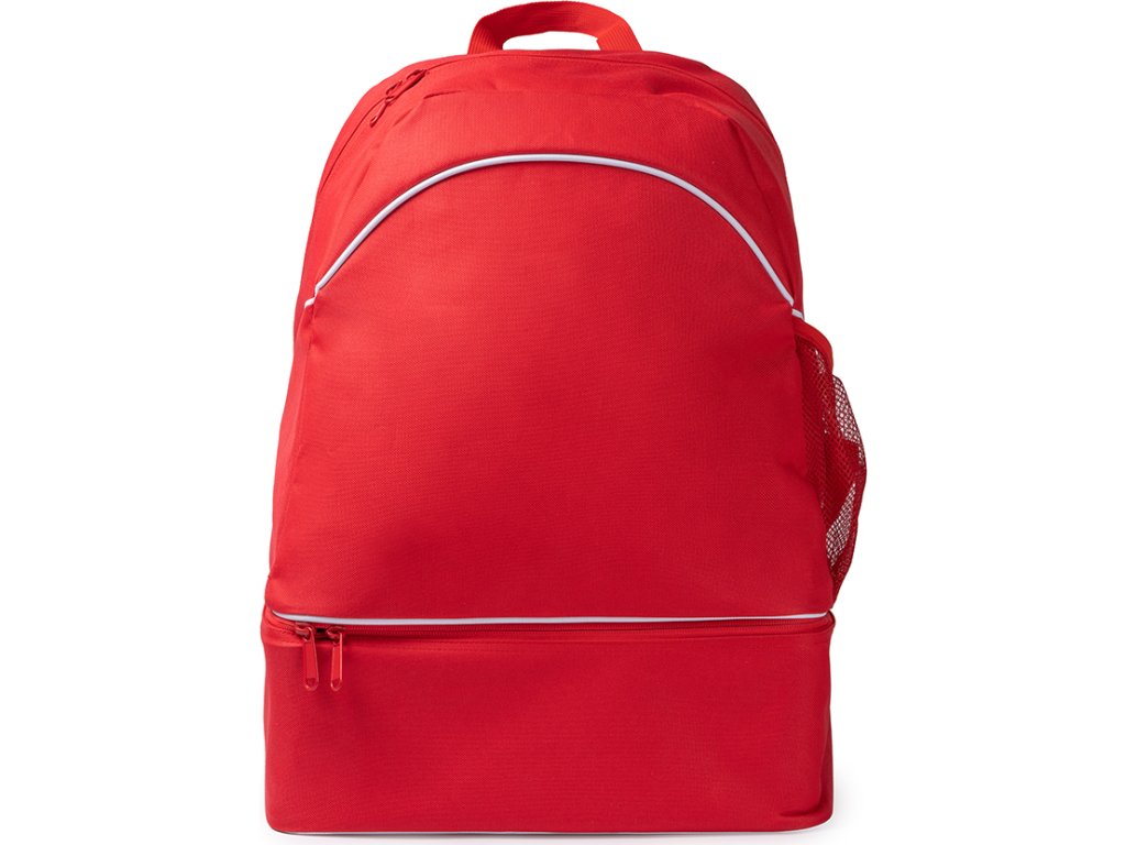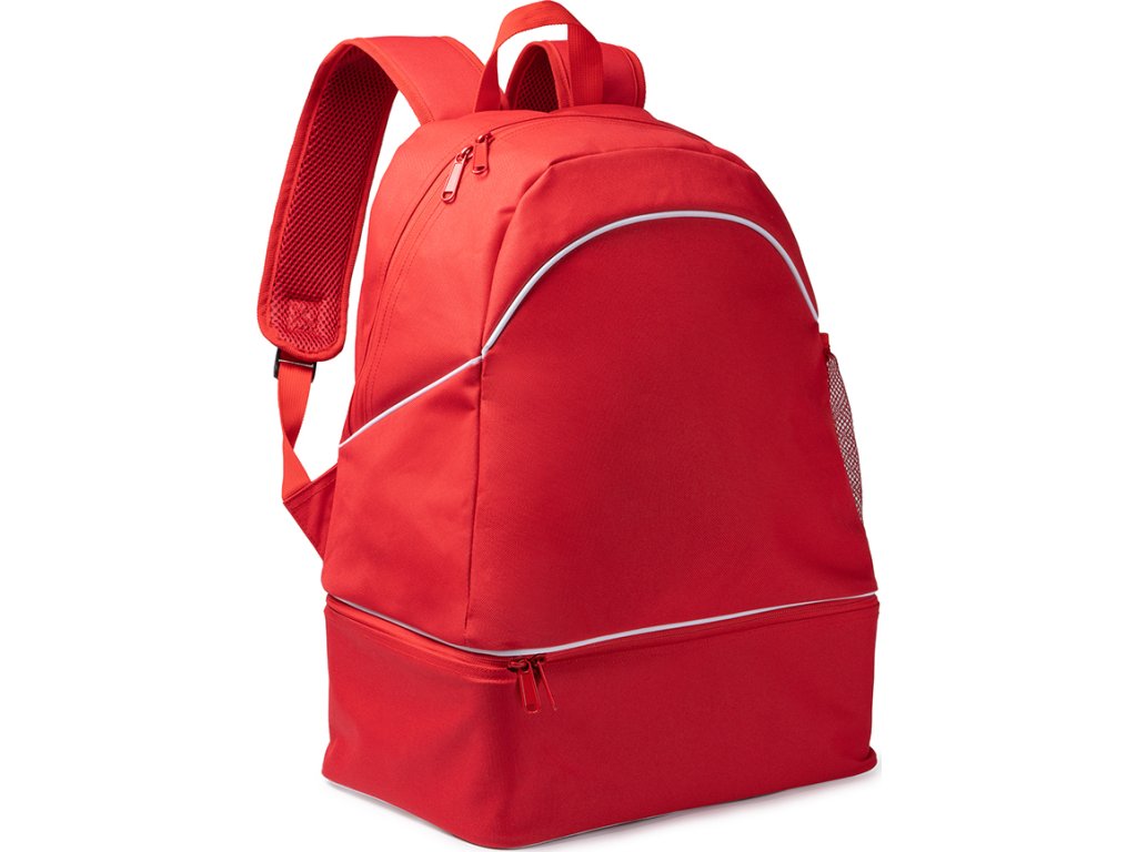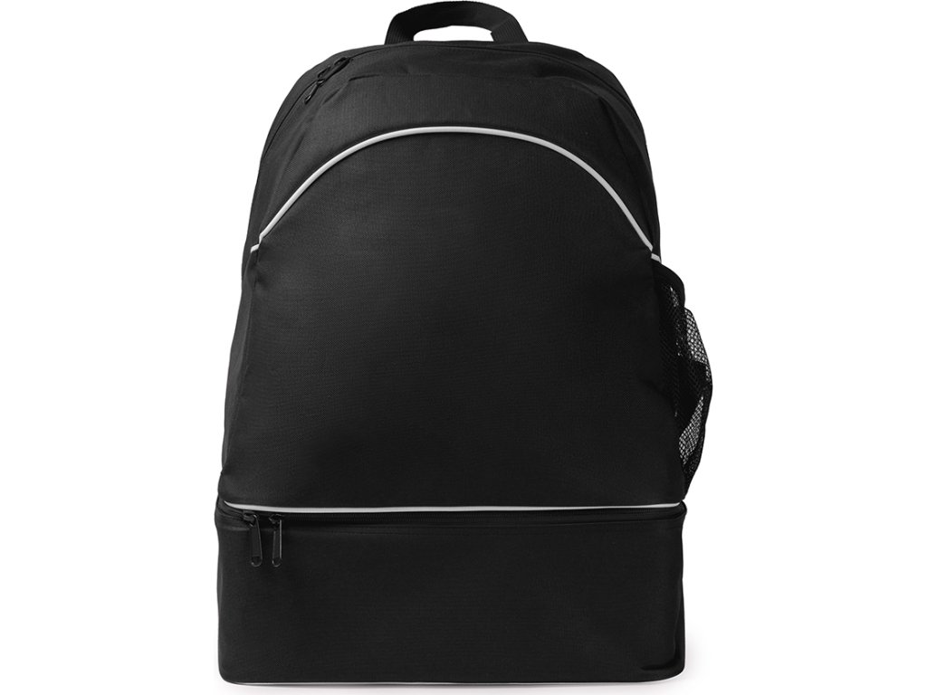 Sportovní batoh s pevnou přihrádkou na boty. Hlavní přihrádka na zip s dvojitým stahováním. Vnitřní kapsa z podšité látky se zapínáním na zip. Polstrovaná záda a ucha. Plastové pouzdro na kartičku s údaji.