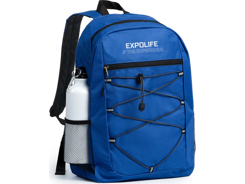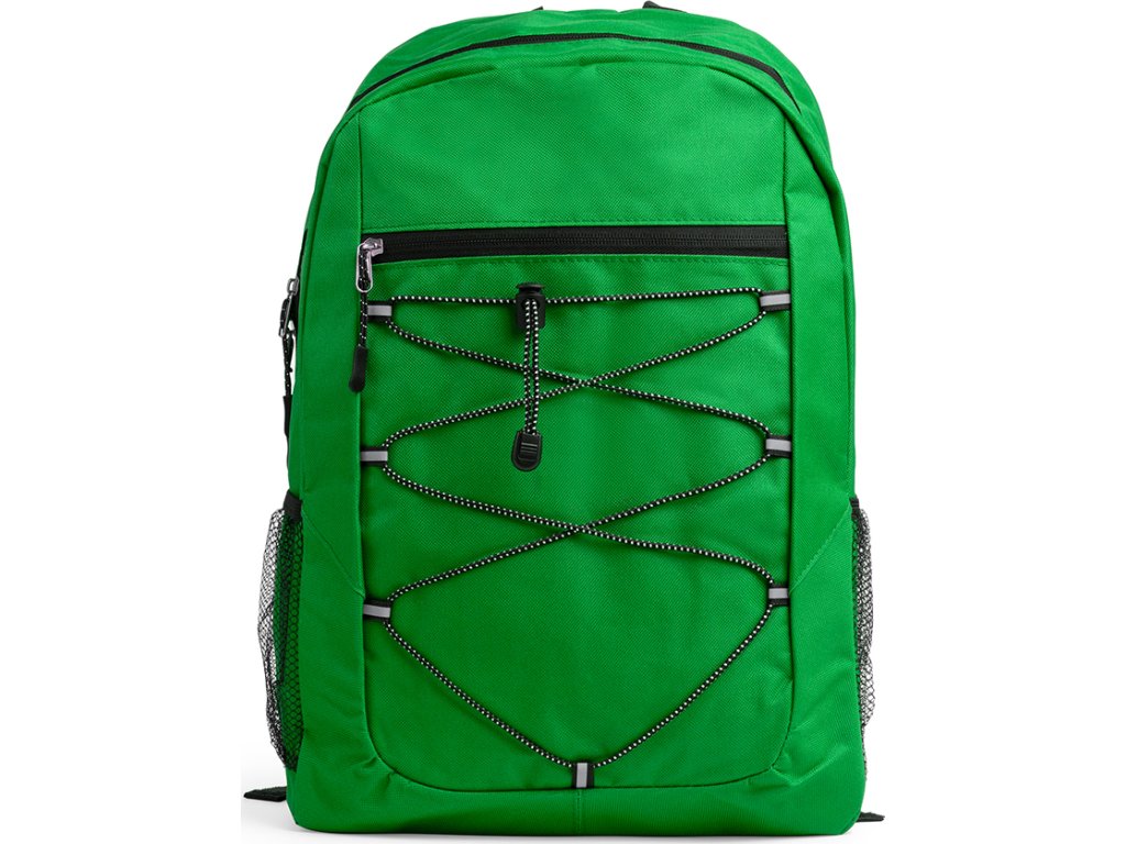 Sportovní batoh z polyesteru 600D. Hlavní a přední kapsa se zapíná na zip. Přední elastická bungee šňůra a boční síťované kapsy. Polstrovaná záda a ramenní popruhy.