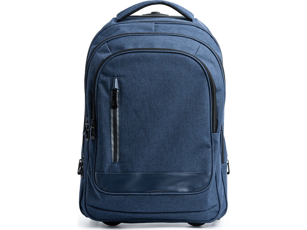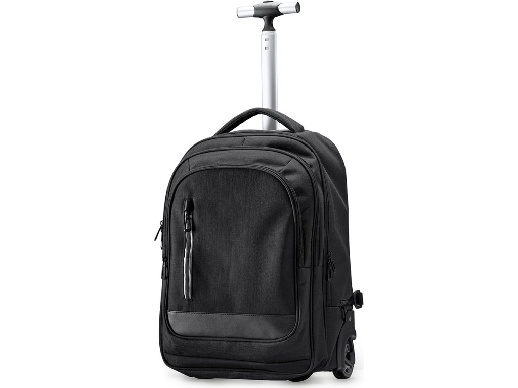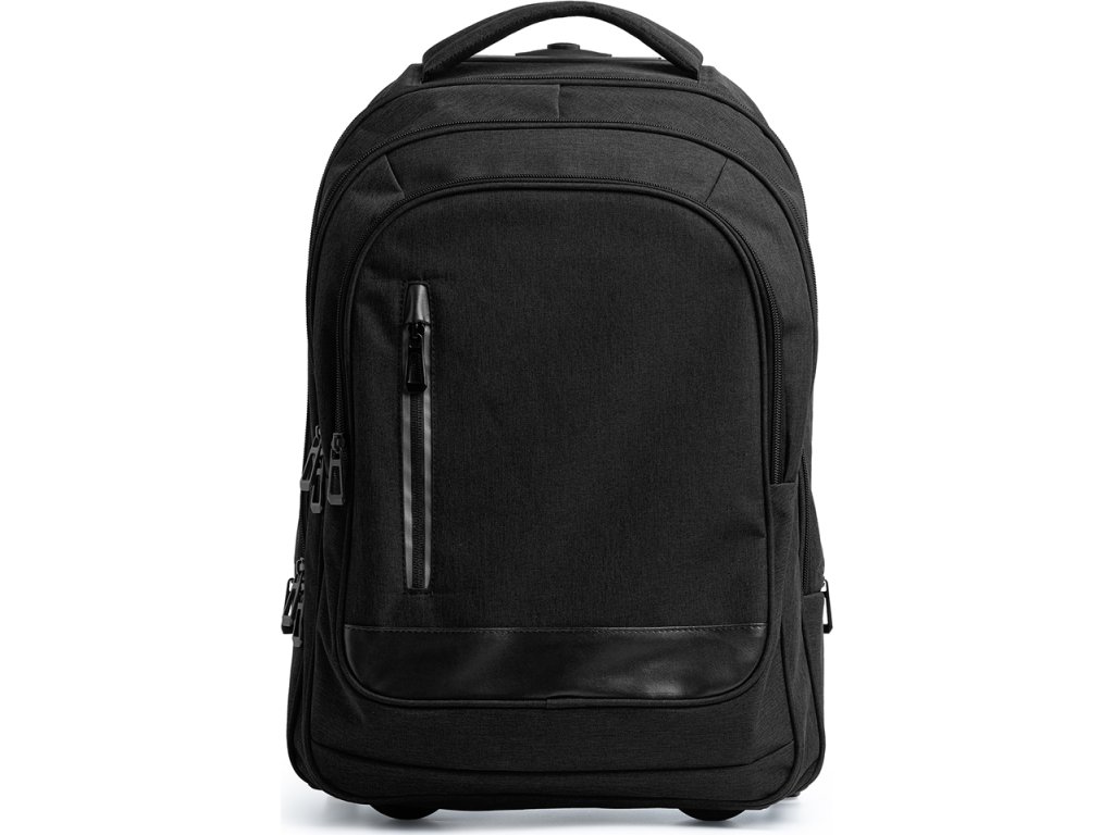 Batoh na kolečkách vyrobený z vřesového polyesteru 300D. Hlavní prostorná kapsa s vnitřní polstrovanou přihrádkou, ideální pro notebooky do velikosti 15". Dvě kapsy s vnitřními přihrádkami a přední kapsa. Vysoce kvalitní a odolný skelet. Nastavitelné polstrované ramenní popruhy. Kryty koleček odolné proti ušpinění.