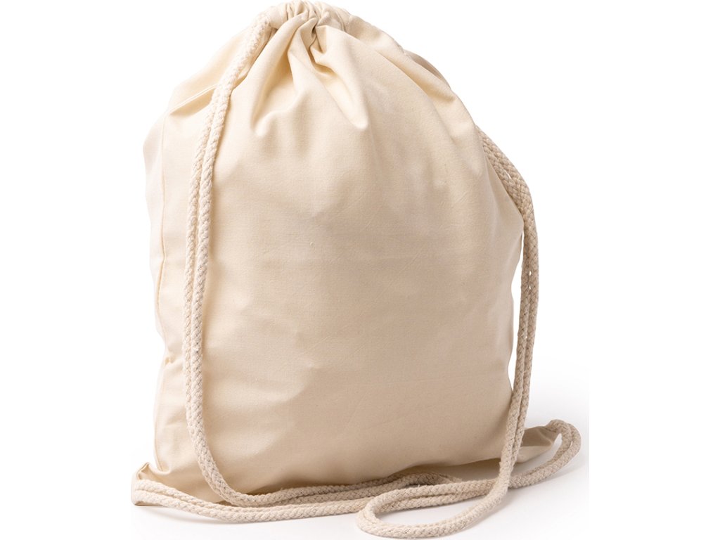 Stahovací batoh z RPET polyesteru s příměsí bavlny o gramáži 150 g/m². Ideální pro sublimaci.
