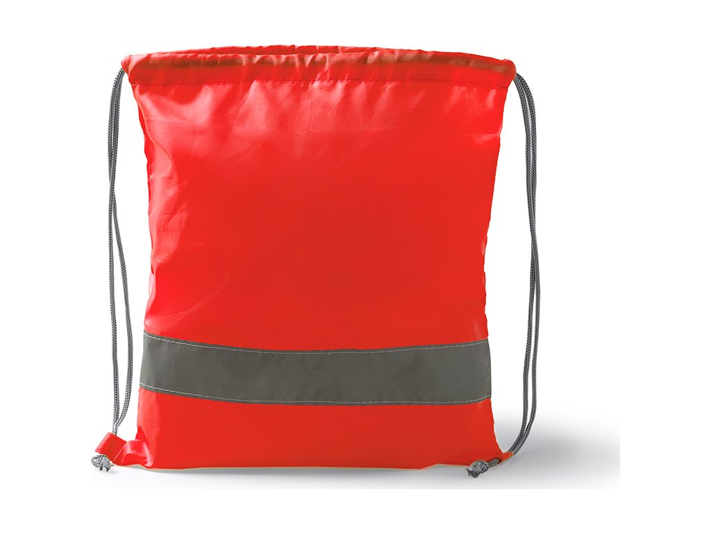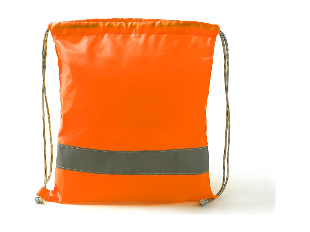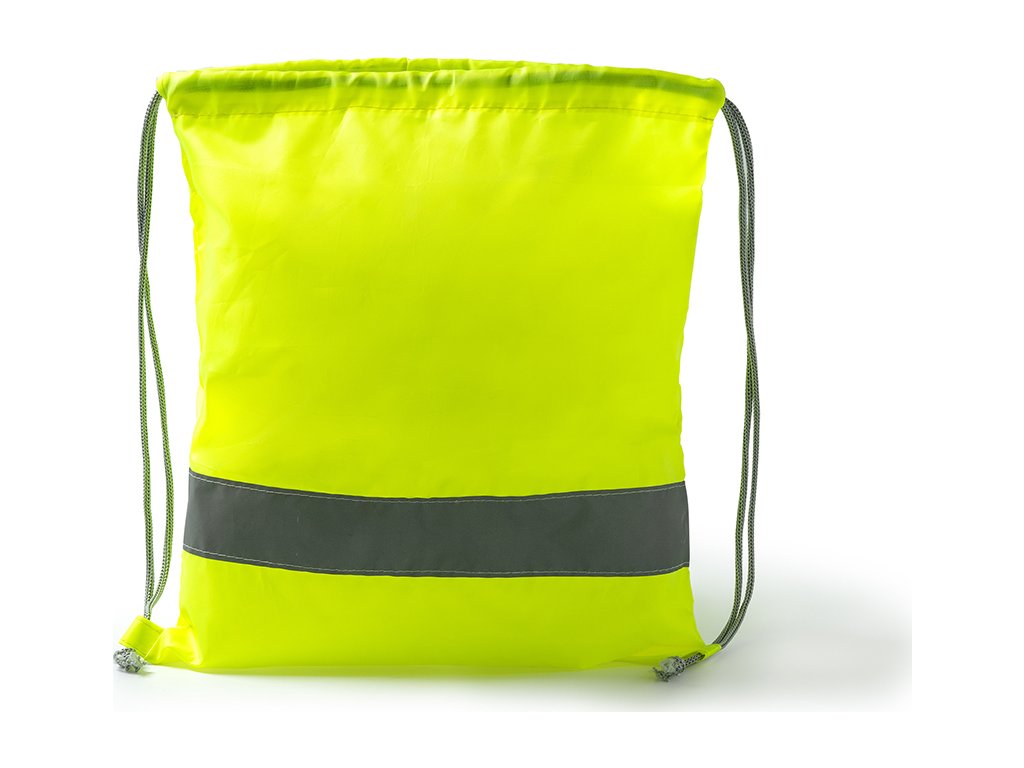 Batůžek se stahovacími šňůrkami s pruhem s vysokou viditelností, z polyesteru 210D.