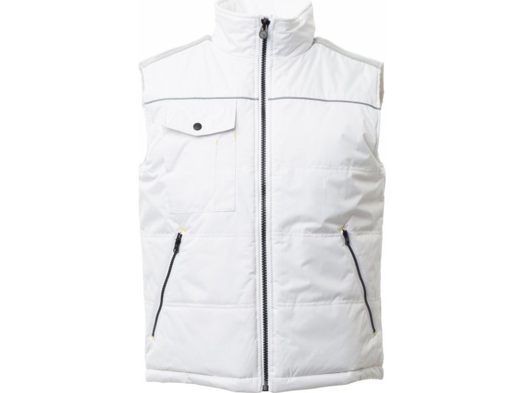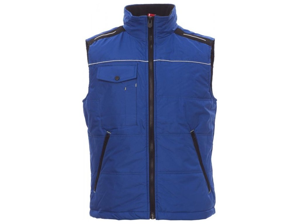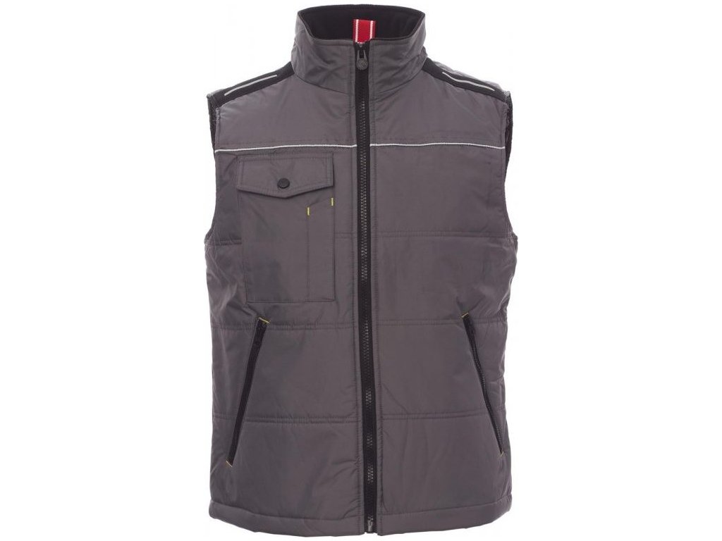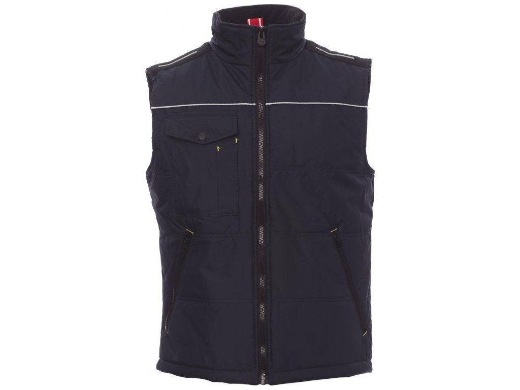 VESTY_IMBOTTITO SENZA MANICHE_Unisexová vesta s 8mm plastovým zipem s kovovým jezdcem, tvarovaná záda, dvě velké vnější kapsy na zip, velká kapsa na hrudi na smartphone a upínací kroužek na jmenovku, reflexní lemování na hrudi a na zádech. Vnitřek: zateplení, prošívaný materiál podšívky s vysokou hustotou, flísový vnitřek límce, jedna kapsa.