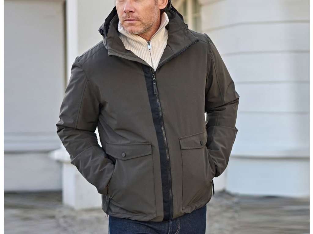 Probíhá přeměna materiálu na recyklovaný polyester, 2-vrstvý funkční materiál, voděodpudivé (8.000mm vodní sloupec), prodyšné (3.000g/m² za 24h), odnímatelná kapuce se stahovací šňůrkou, elastický lem a manžety, ochrana brady, SBS zip, 2 boční kapsy se zipem a klopou s černým kovovým zapínáním na patent, vnitřní kapsa s patentkou, přístup k zušlechtění na zádech, BIONIC-FINISH®