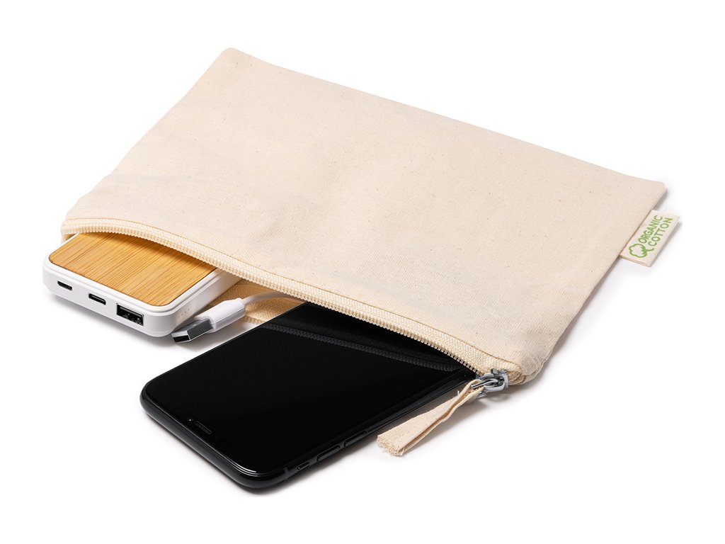 Toaletní taška ze 100% organické bavlny s odpovídajícím stahovacím páskem. 180 g/m².