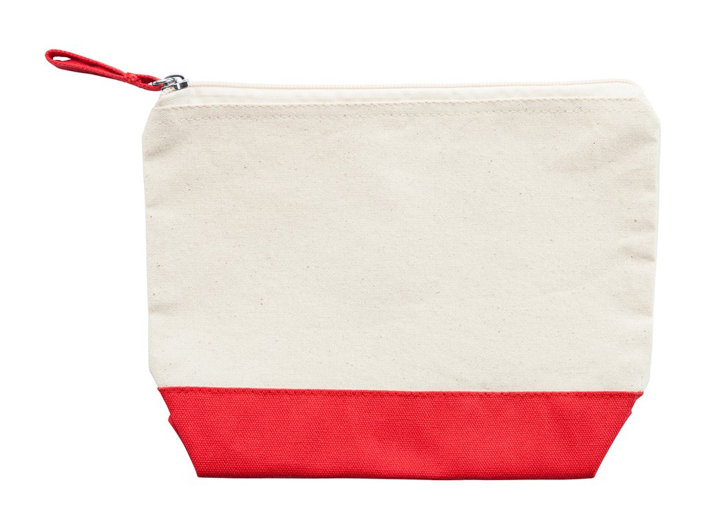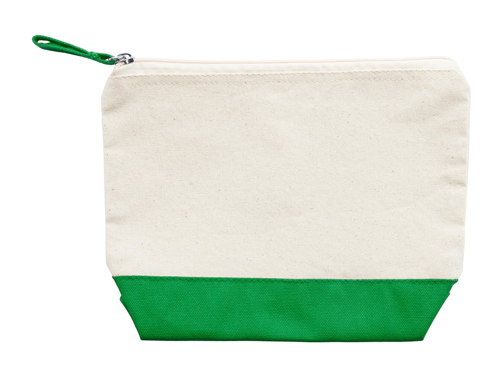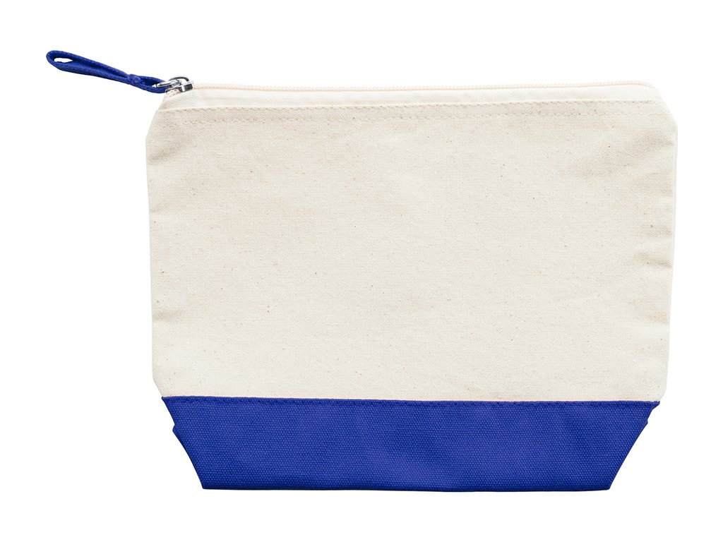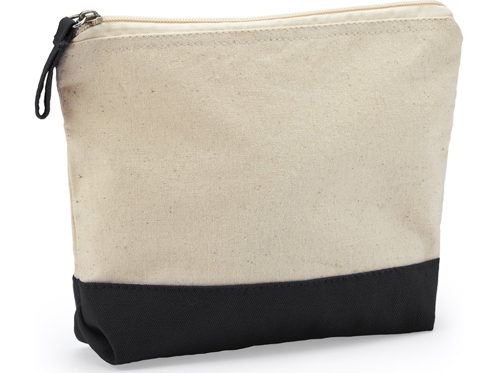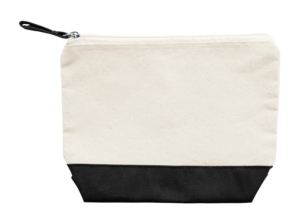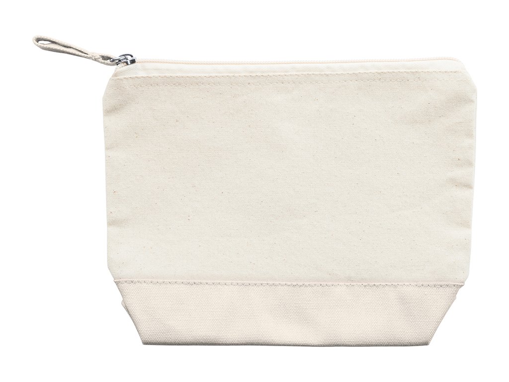 Víceúčelová toaletní taška z bavlny o gramáži 280 g/m² ve dvoubarevném provedení. Zapínání na zip s odpovídajícím bavlněným taháčkem.