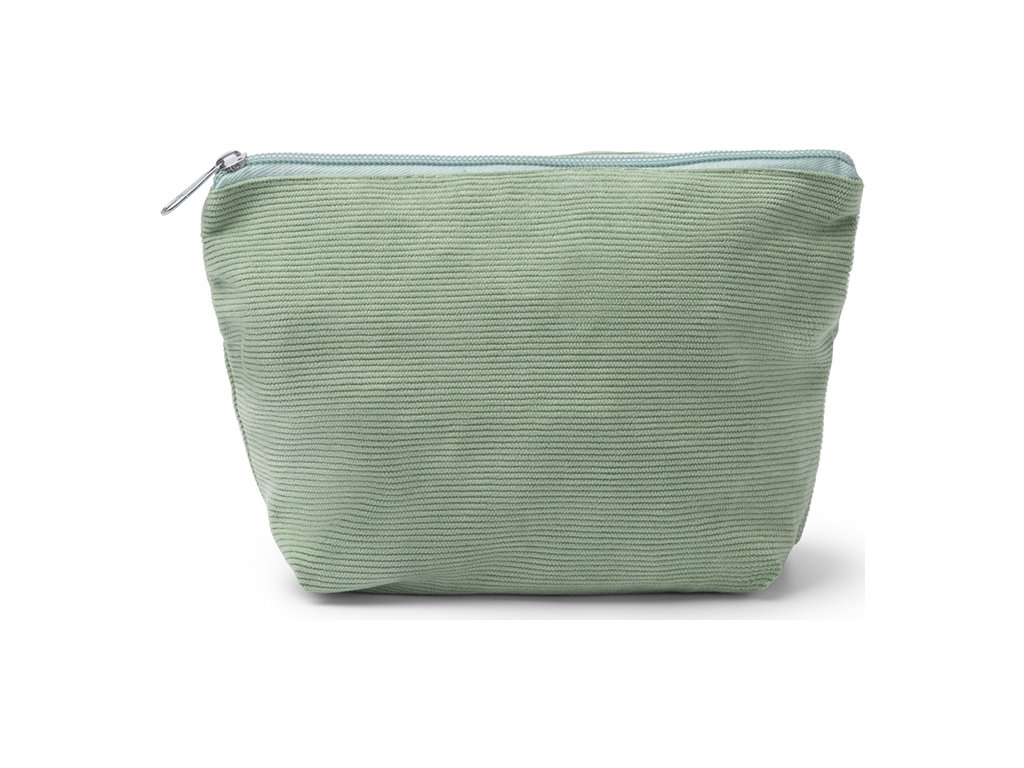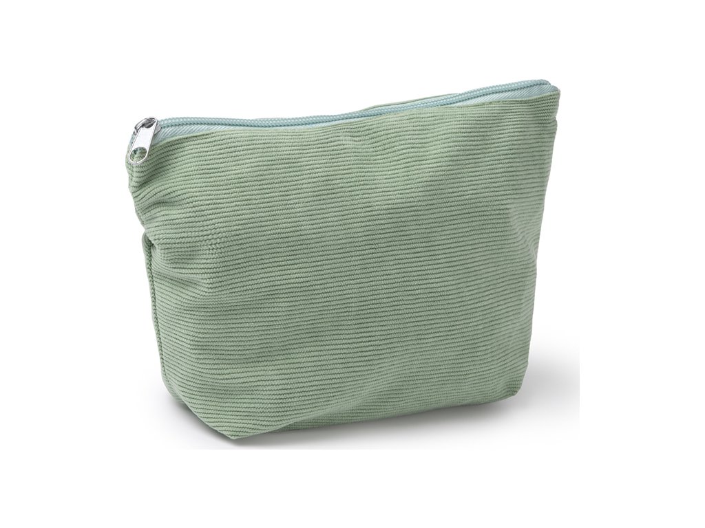 Toaletní taška z manšestrové látky, která kombinuje eleganci a praktičnost a je ideální pro uspořádání vašich věcí.