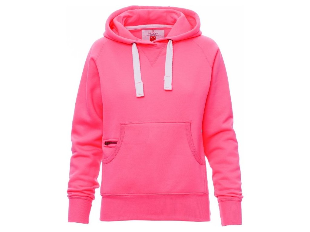 MIKINY_CAPPUCCIO_Dámská vyštíhlená mikina s kapucí s dvojitým prošitím, bílá stahovací šňůrka se sladěným prošitím a s kovovými kroužky, raglánové rukávy, V-prošívání pod krkem, klokaní kapsa, kapsička na zip, manžety a pas s elastickým žebrováním, zesílené švy.