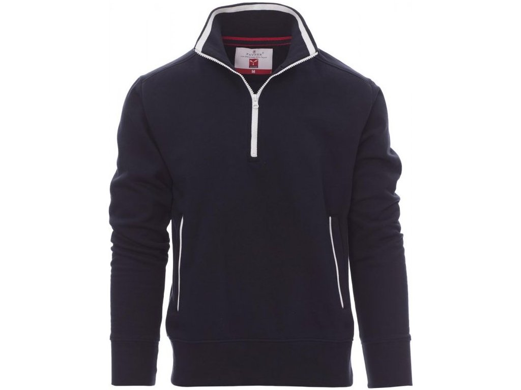 MIKINY_MEZZA ZIP_Pánská mikina s plastovým polozipem v kontrastní barvě, s kovovým jezdcem, kontrastní lem kolem krku a postranních kapes, všívané rukávy, límec, manžety a pas s elastickým žebrováním, zesílené švy.