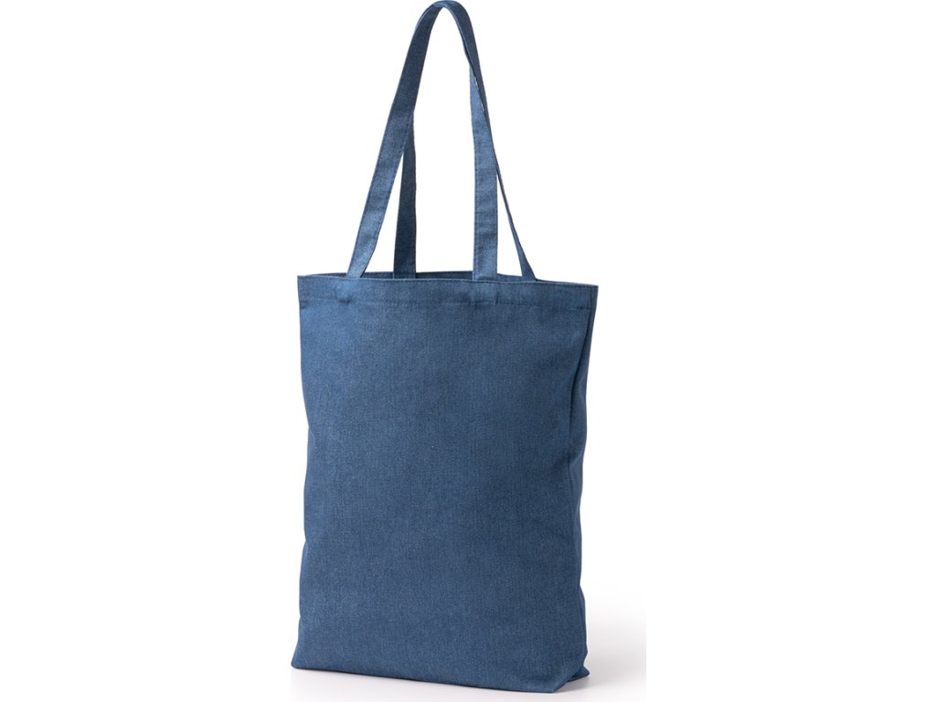 Taška z recyklované džínoviny se základnou. Ucha dlouhá 70 cm.