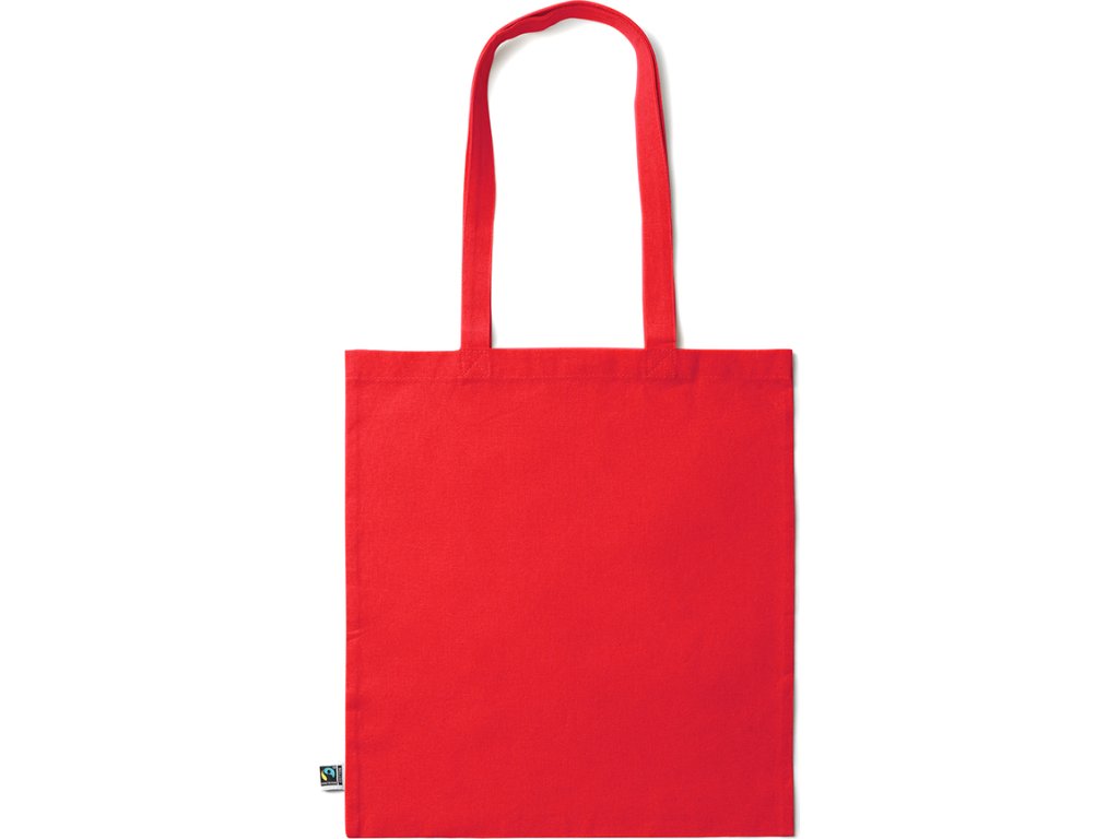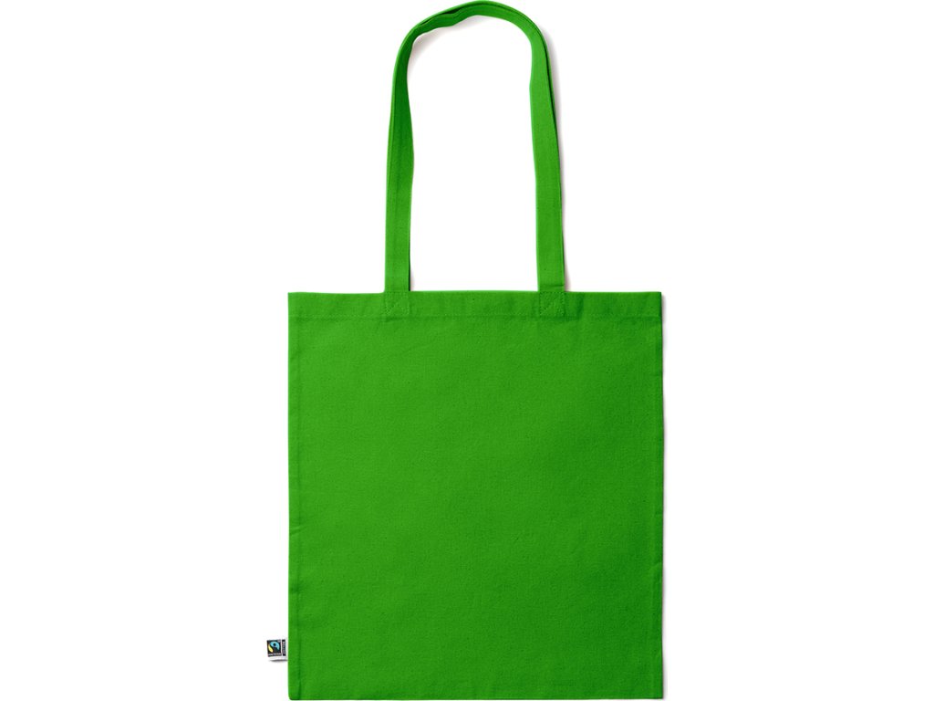 Barevná Tote bag ze 100% Fairtrade bavlny (180 g/m²), se zesílenými 70 cm dlouhými uchy.