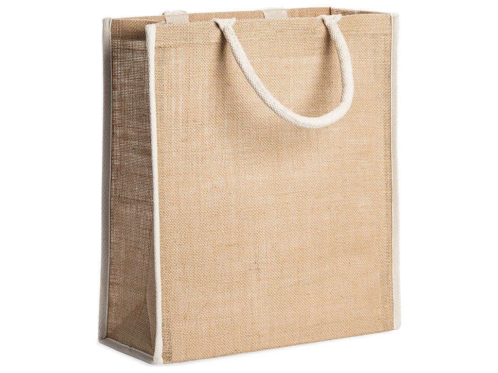 Taška z přírodní juty s lemy a zesílenými bavlněnými uchy. Sešité okraje.
