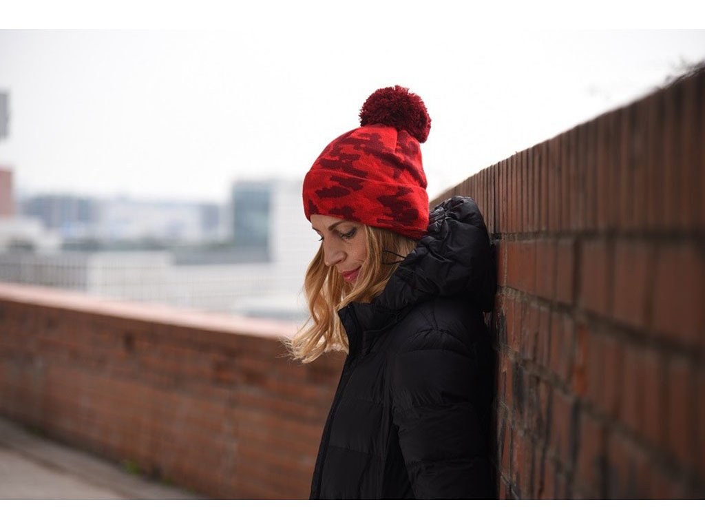Zimní čepice bez fleecové podšívky se záhybem a akrylovou bambulí