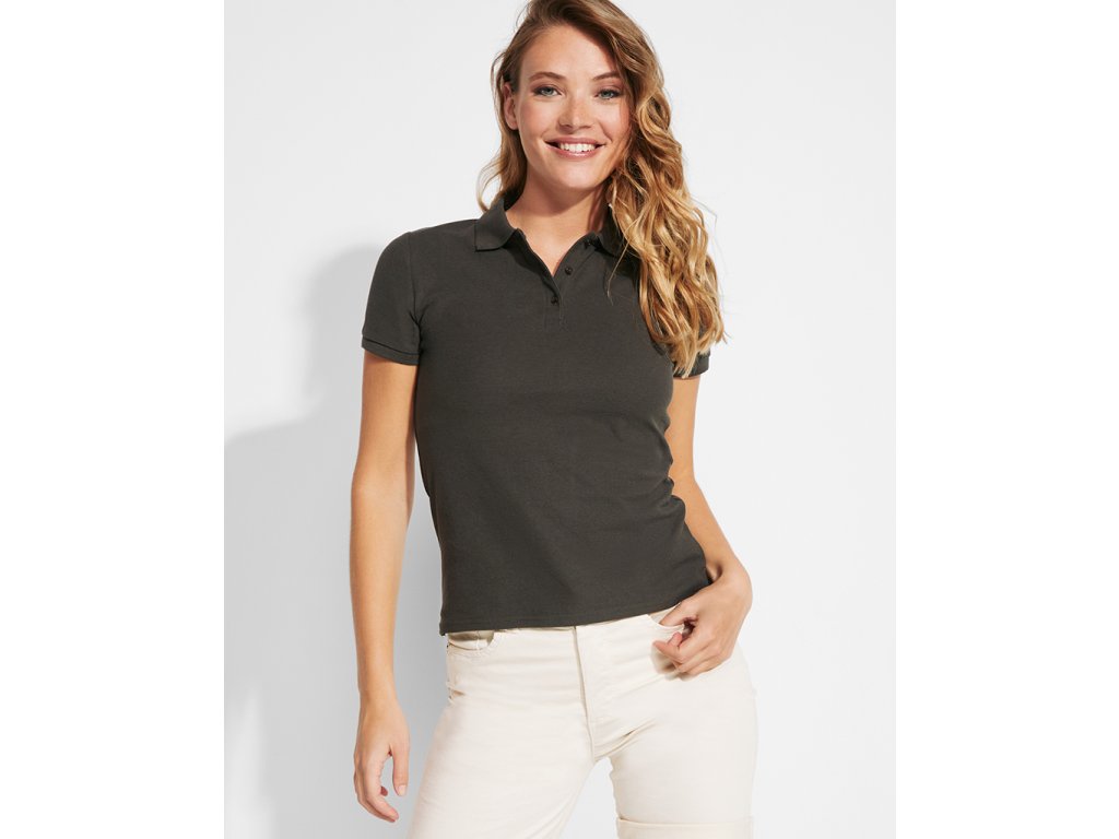 Dámská přiléhavá polokošile s krátkým rukávem. Límec a ukončení rukávů v žebrovaném úpletu 1x1. Zapínání na 3 knoflíky. Zesílené prošití švů. Boční rozparky na spodním lemu.