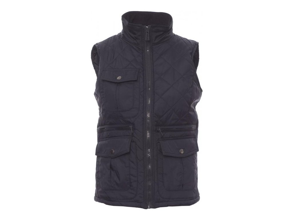 VESTY_IMBOTTITO SENZA MANICHE_Dámská prošívaná ergonomická vesta s 8mm plastovým zipem s kovovým jezdcem, boční rozparky s knoflíkem, pět vnějších kapes, z nichž dvě s LOCK SYSTEMem. Vnitřek: zateplení, manšestrová vnitřní strana límce, jedna kapsa.