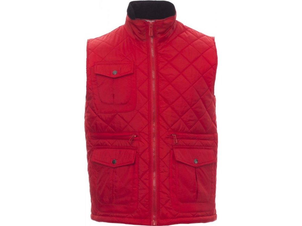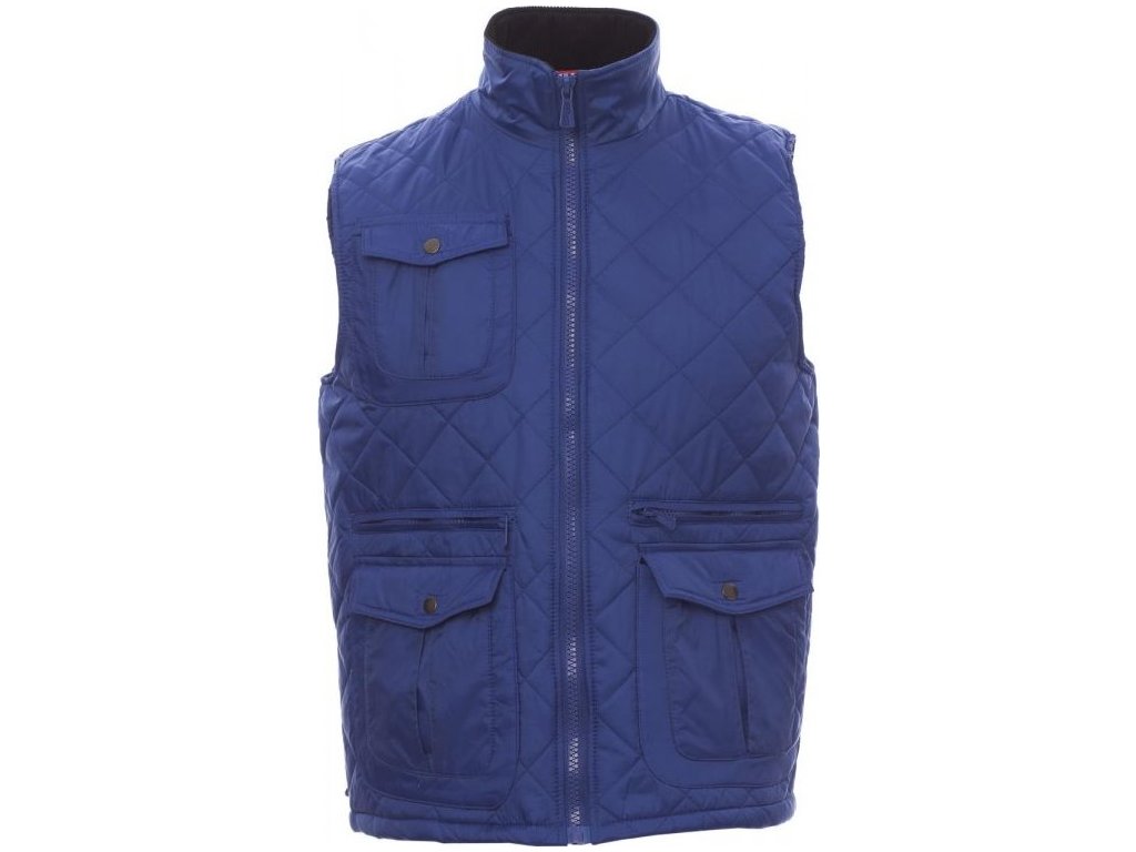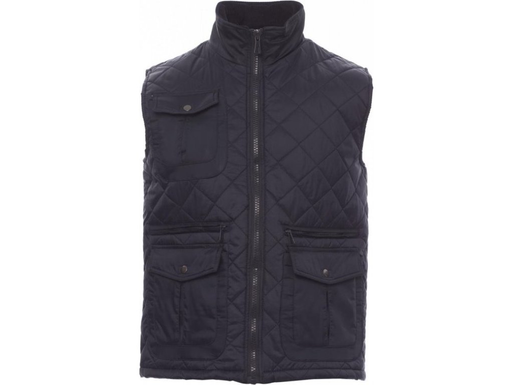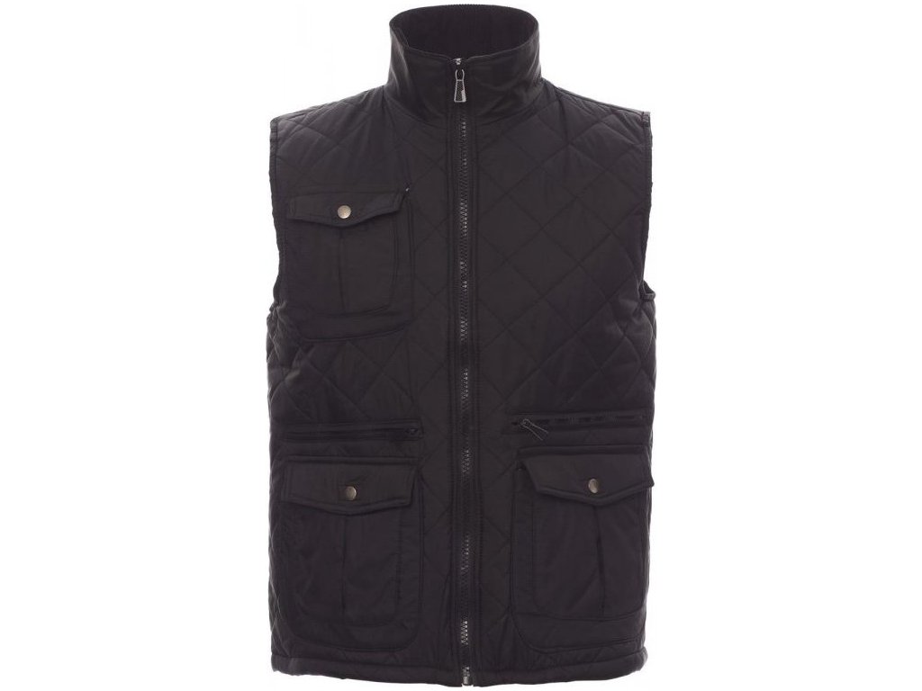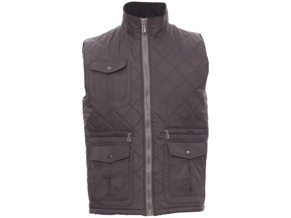 VESTY_IMBOTTITO SENZA MANICHE_Pánská prošívaná vesta s 8mm plastovým zipem s kovovým jezdcem, boční rozparky s knoflíkem, pět vnějších kapes, dvě s LOCK SYSTEMem. Vnitřek: zateplení, manšestrová vnitřní strana límce, jedna kapsa.