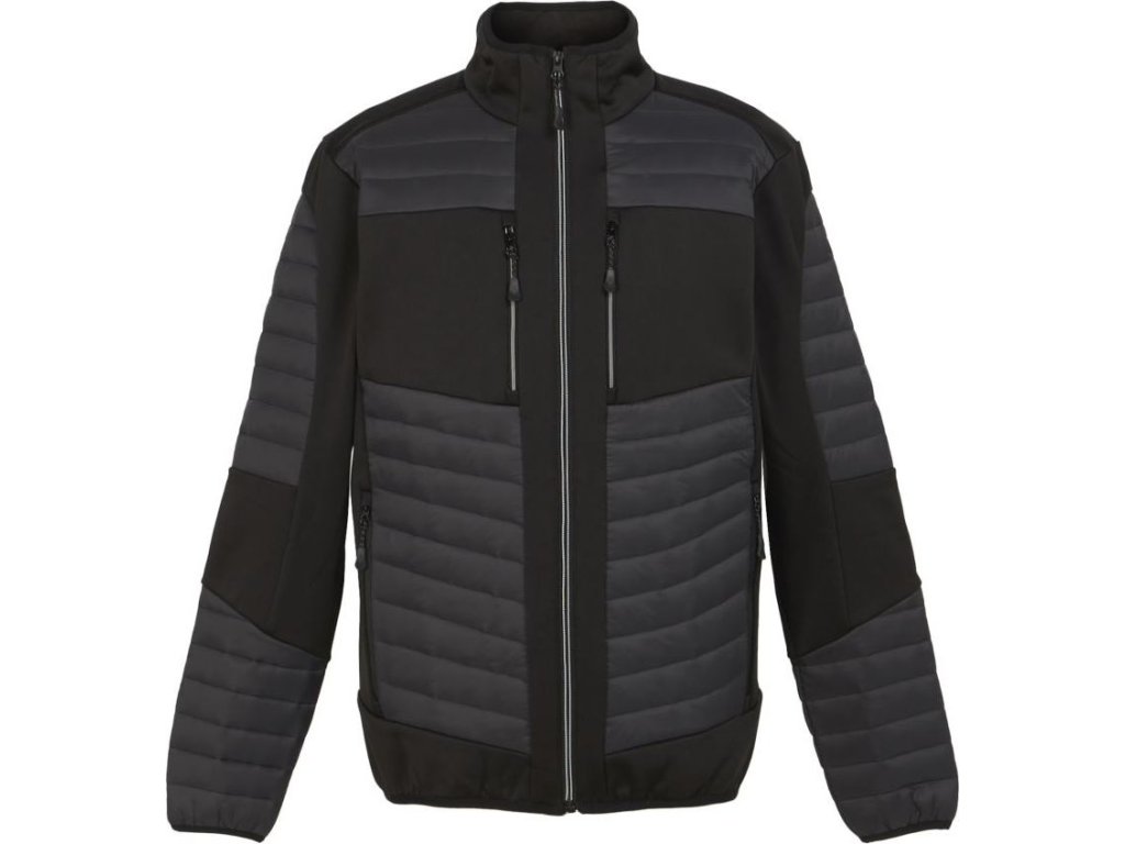 Voděodpudivá úprava, lemované, elastické manžety na rukávech, lemu a límci, 2 boční kapsy se zipem, 2 náprsní kapsy na zip, reflexní detail