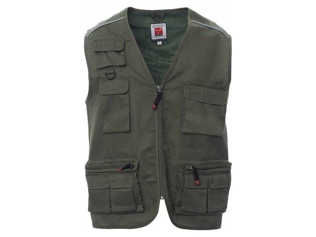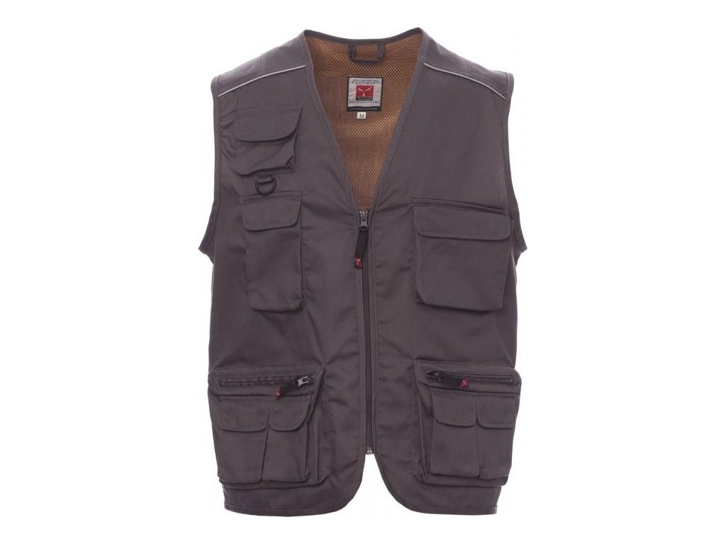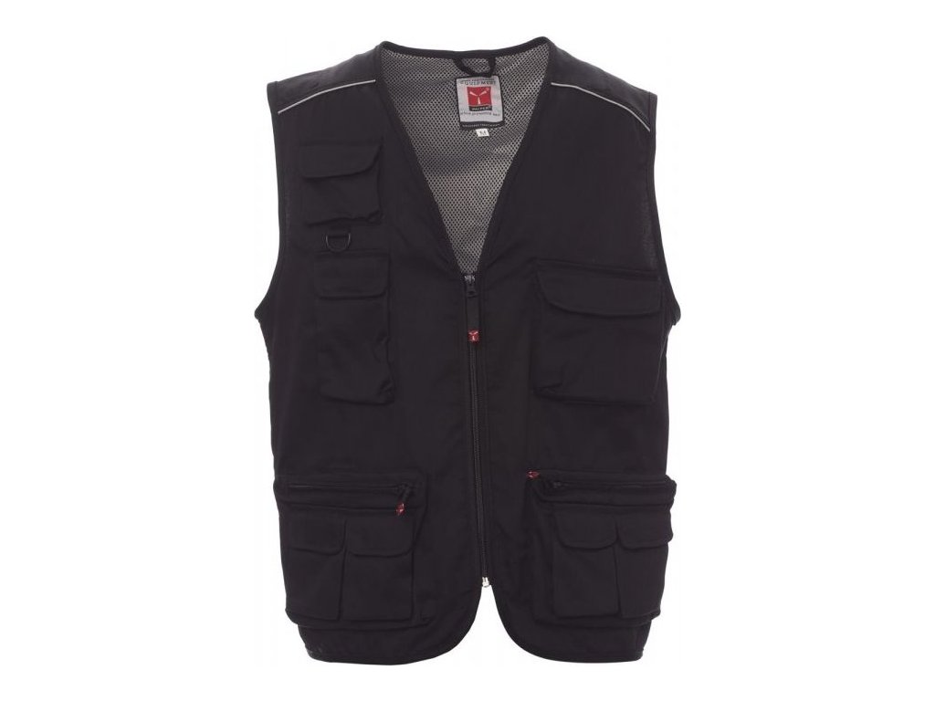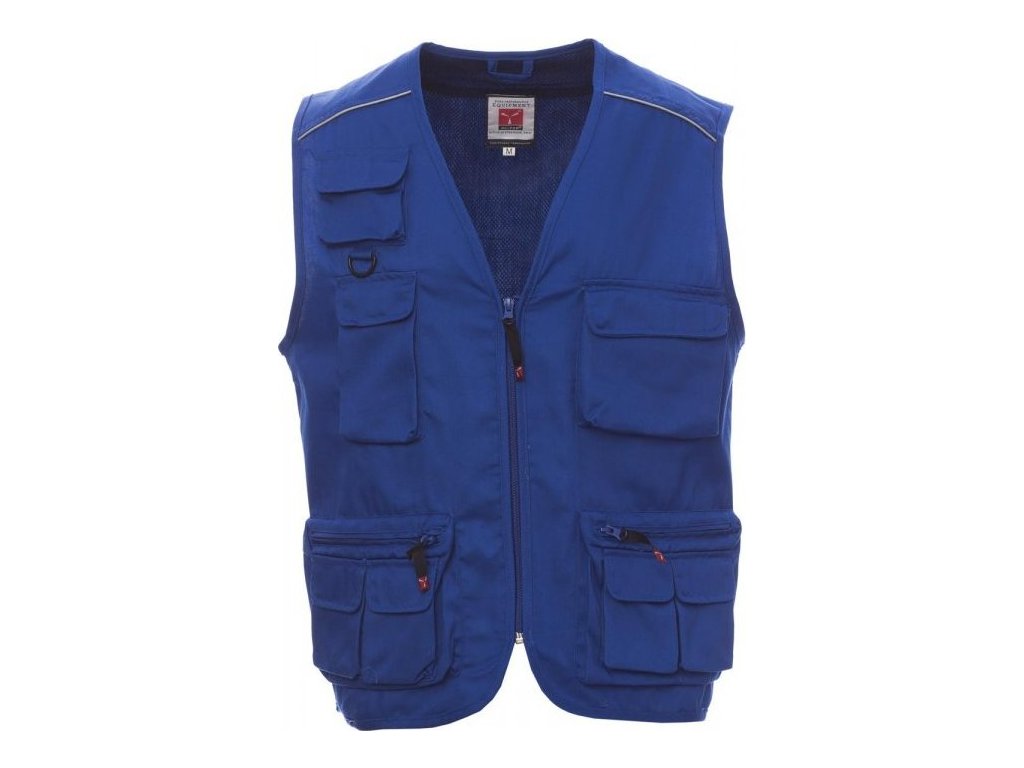 VESTY_NO IMBOTTITO SENZA MANICHE_Letní vesta, zip, systém předních víceúčelových kapes, kapsa v levé horní části s oboustranným pouzdrem na jmenovku a reflexním doplňkem, reflexní lemování na ramenou a na zádech, velká lovecká kapsa na zádech. Vnitřek: zátěr dry-tech v kontrastní barvě, rozepnutá pro snadnější potisk a vyšívání.