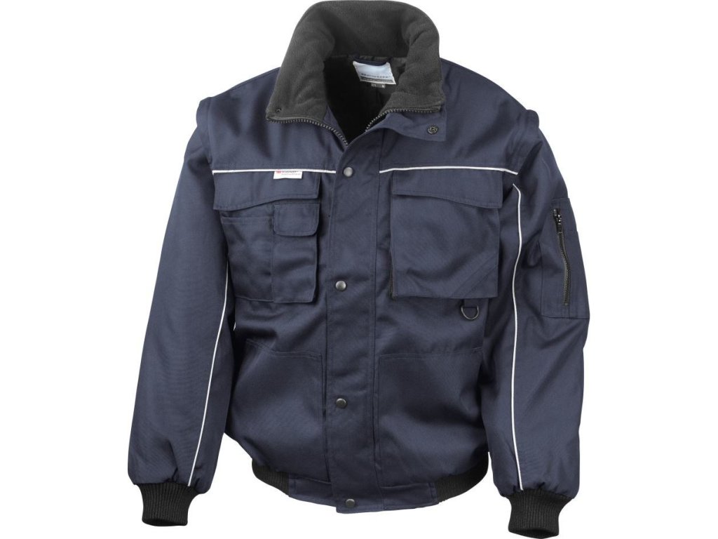 Voděodpudivý, polstrovaný límec, elastický lem a manžety, 2 hluboké našité kapsy vpředu, 2 náprsní kapsy s držákem na pero, kapsa na rukávu, 2 vnitřní kapsy, švy zesílené dalším klikatým švem na kapsách a obzvlášť namáhaných místech, přístup k zušlechtění na zádech a levém prsu, 2 "D"-kroužky, materiál odolný proti větru, pratelné na 30°, nelze žehlit, nelze sušit v sušičce