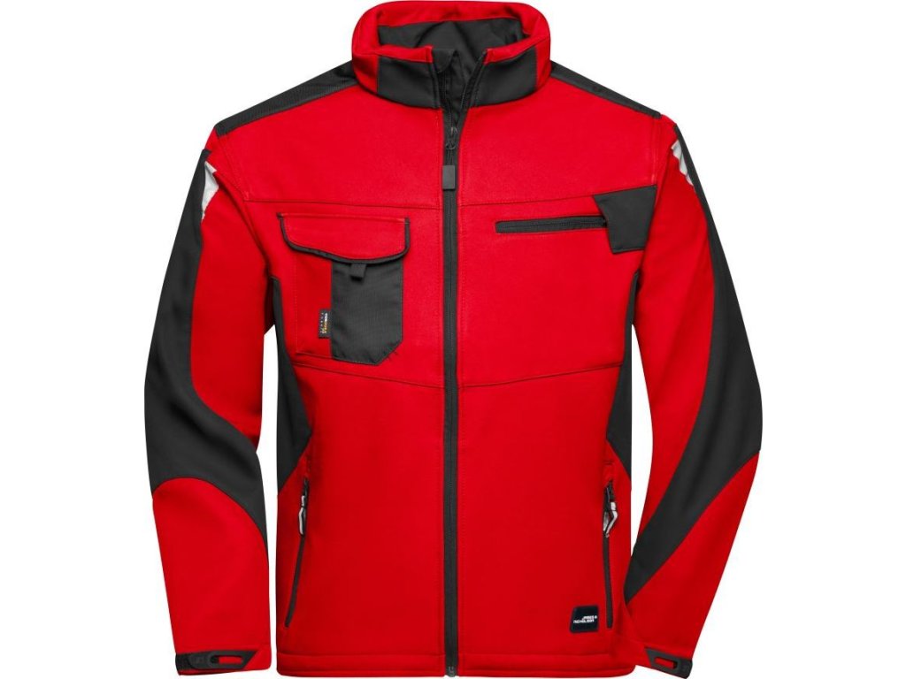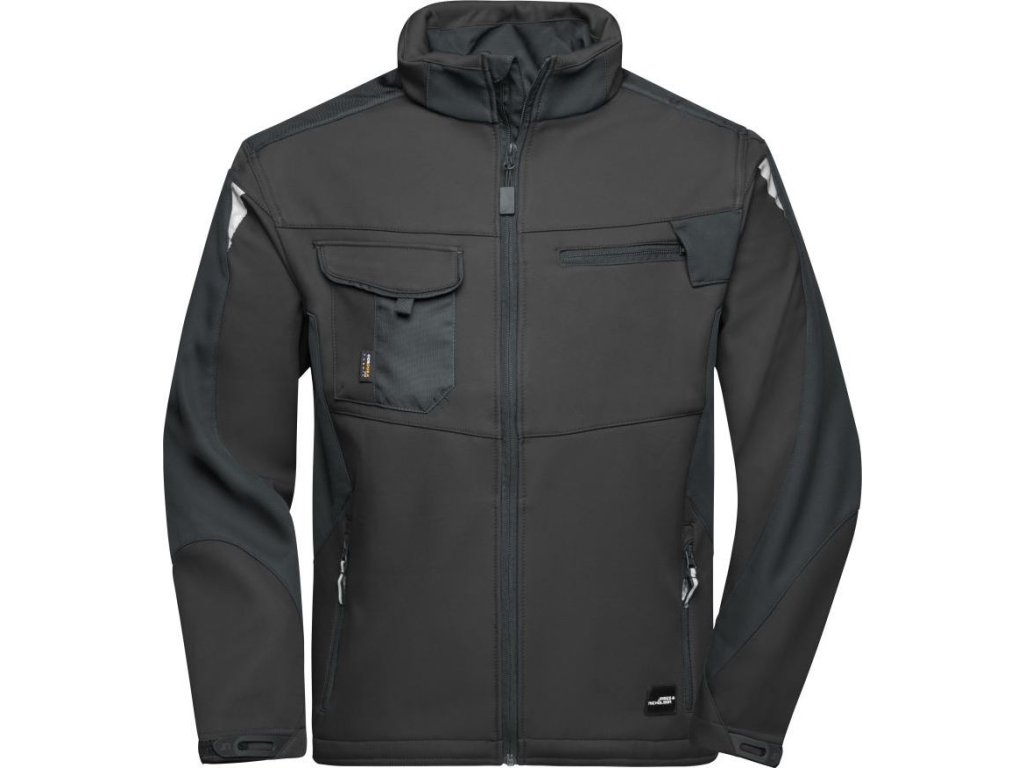 Větruodolná a voděodpudivá (2.000mm vodní sloupec), prodyšné (2.000g/m² za 24h), stojáček, oblast ramen zesílená tkaninou Cordura®, podšitý zip s větrnou clonou, vnitřní kapsa, boční kapsy a náprsní kapsa se zipem, robustní softshellový materiál, reflexní prvky (bez ochranné funkce) na rukávech a na zádech, pratelné na 30°, nelze žehlit, nelze sušit v sušičce