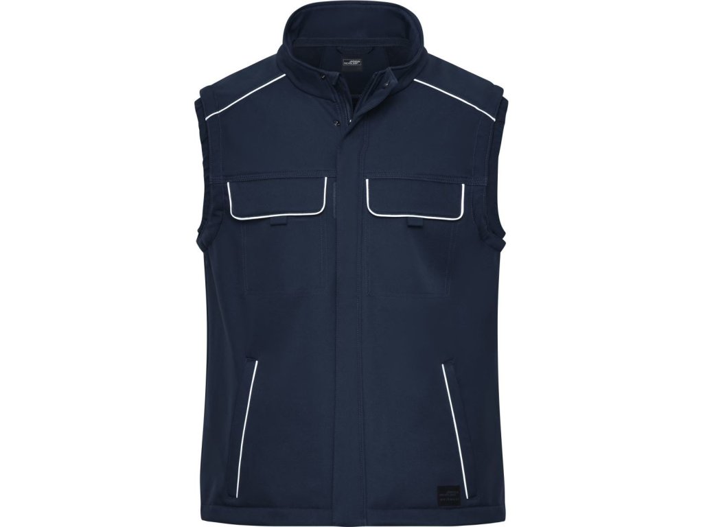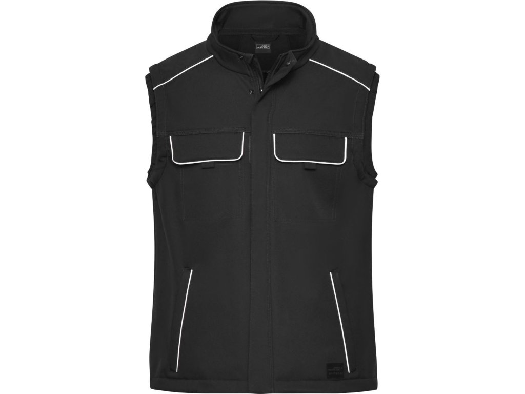 Větruodolná a voděodpudivá (2.000mm vodní sloupec), prodyšná a propustná pro vodní páry (2.000g/m² za 24h), stojáček, elastický okraj na průramcích, plný podšitý zip s větrnou clonou a ochranou brady, YKK zipy, skryté knoflíky a zipy, boční kapsy a vnitřní kapsa se zipem, náprsní kapsa s volnou klopou pro snadné zušlechtění, různé vnitřní kapsy, prodloužená záda, robustní a odolný softshellový materiál, reflexní prvky (bez ochranné funkce) na kapsách, rameni a na zádech, pratelné na 30°, nelze žehlit, nelze sušit v sušičce