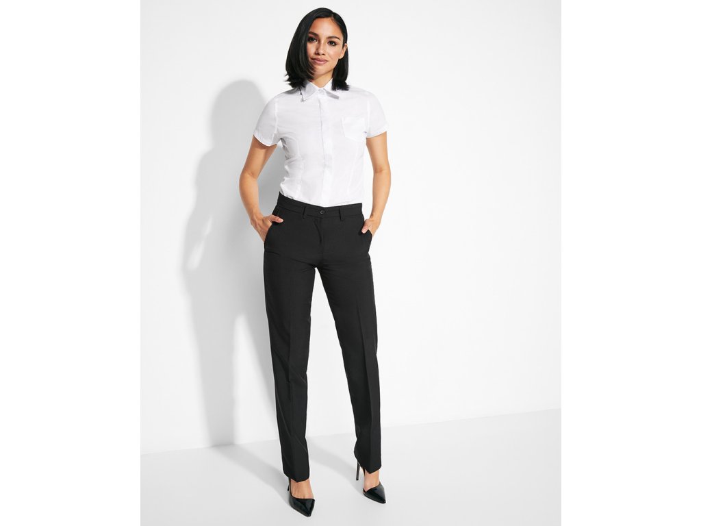 Dlouhé dámské kalhoty pro číšnice. Kalhoty mají 2 záševky vepředu,kapsu na mince vpředu na pravé straně,boční kapsy,kapsu na knoflík vzadu na pravé straně,5 poutek.