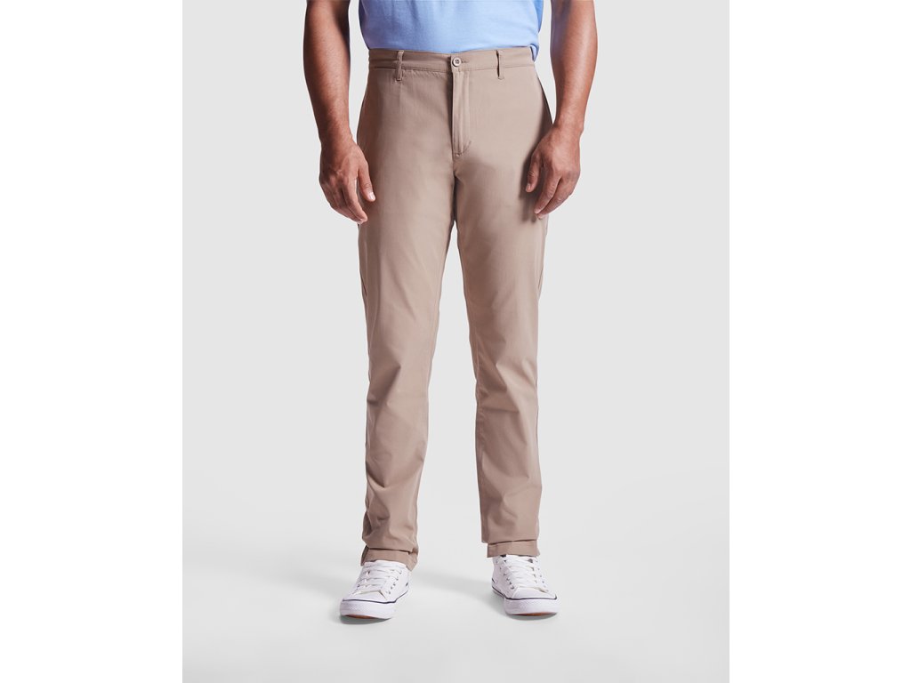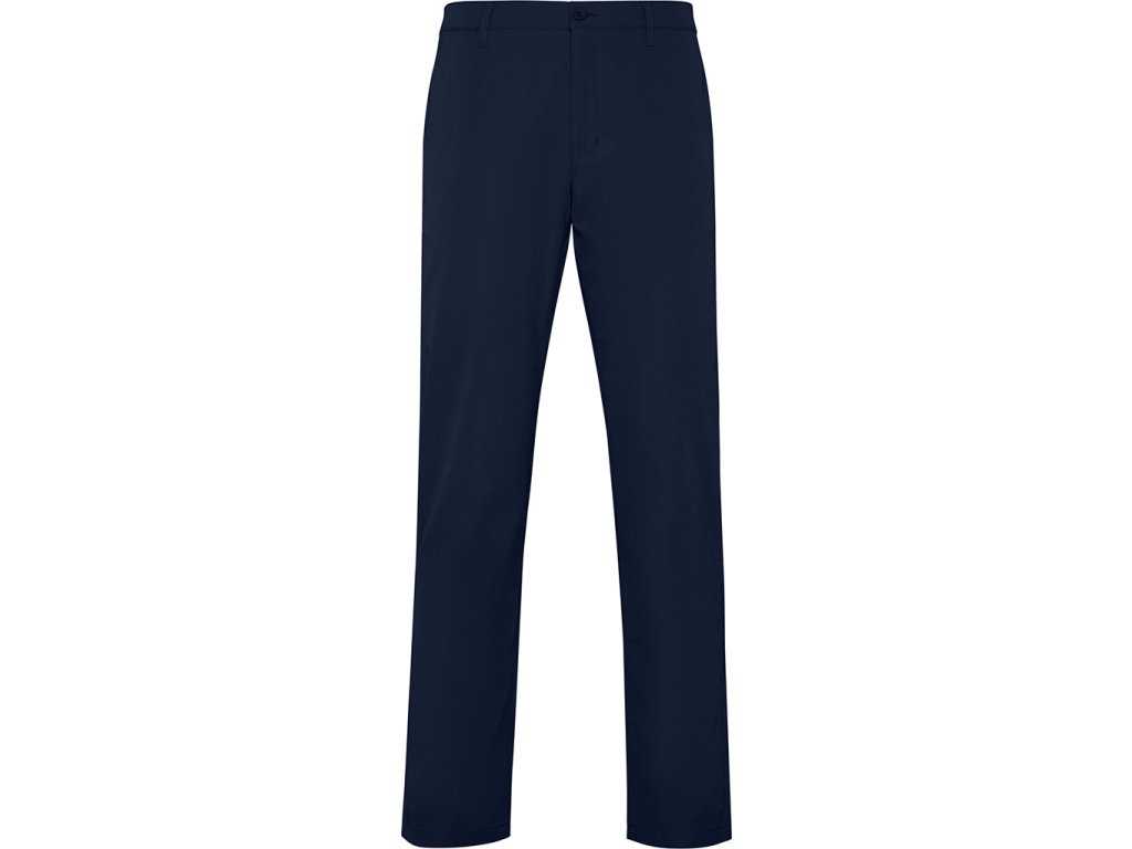 Pánské dlouhé kalhoty. Zapínání na zip a knoflíky. Poutka na opasek. Boční kapsy. Pravá přední kapsa na mince. Pravá zadní kapsa s knoflíkem.