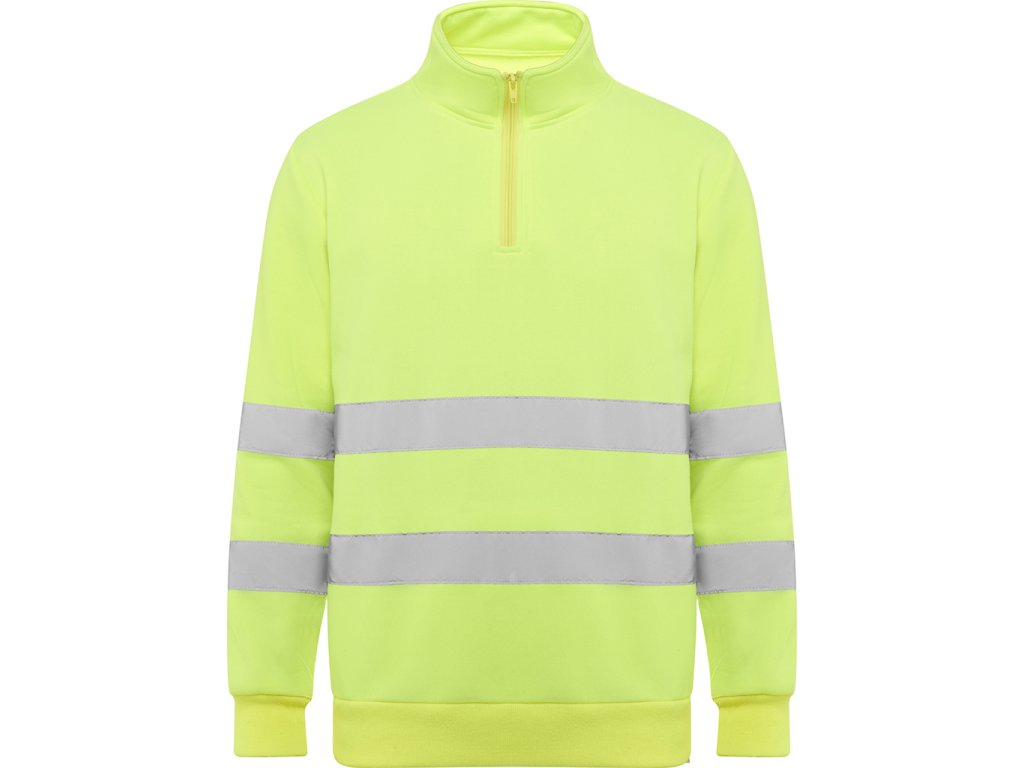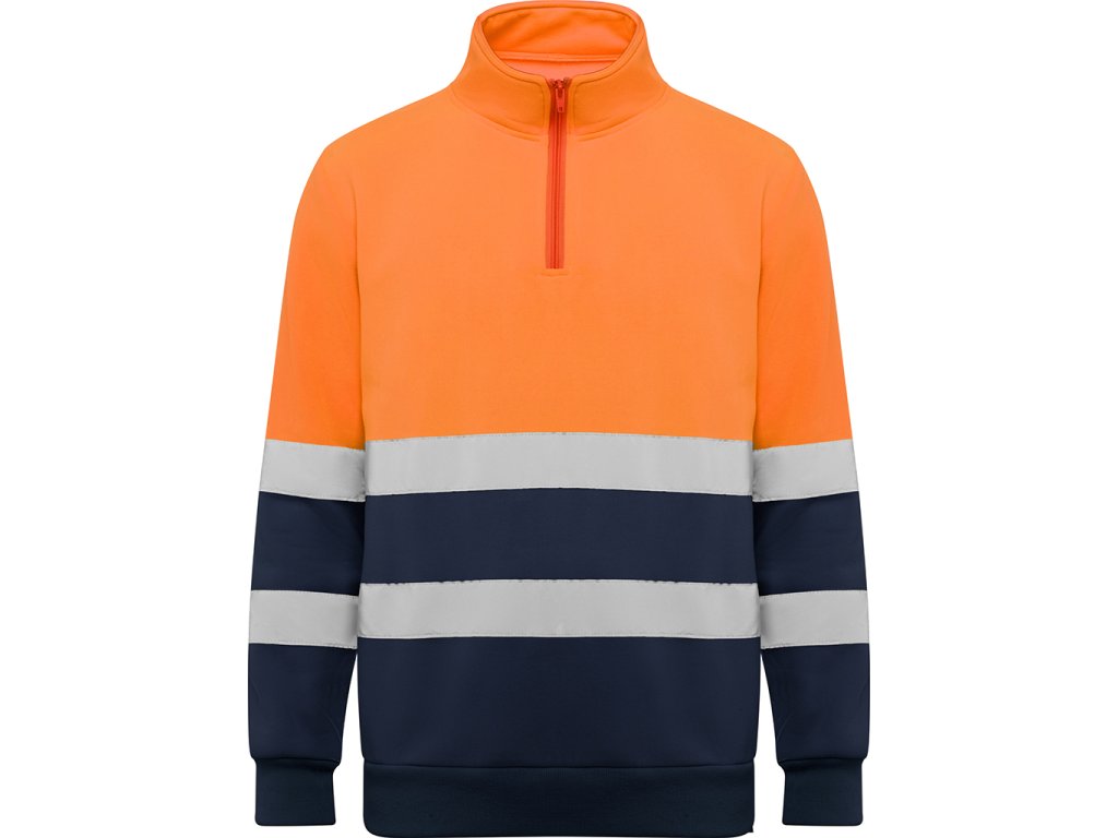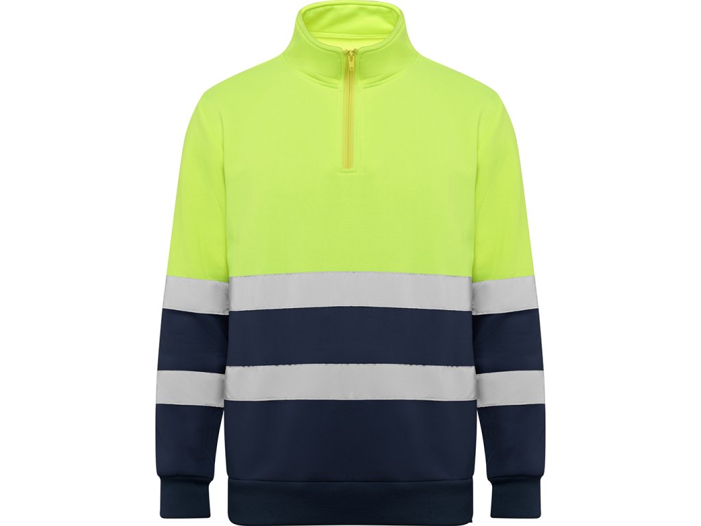 Pánská reflexní mikina s polovičním zipem, vysokým límcem, chráničem brady a zesíleným prošitím na vnitřním límci. Mikina má vodorovné reflexní pruhy na hrudí a na rukávech, 1x1 žebrovanou látku na manžetách a lemu. Certifikace CE podle norem: UNE-EN ISO 13688:2013/A1:2021 a UNE-EN ISO 20471/2013/A1:2017. Třída II.