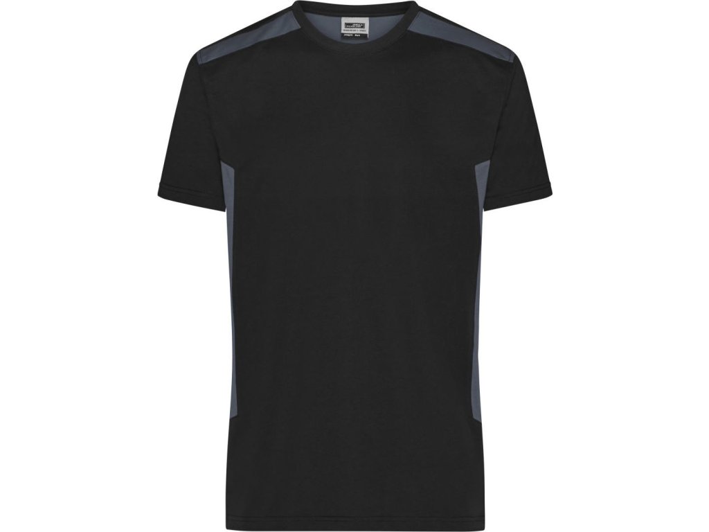 Kulatý výstřih s elastanem, krční lemovka, vsadky v kontrastní barvě na boku a rameni, odolný materiál, pratelné na 60°, lze sušit v sušičce při nízké teplotě