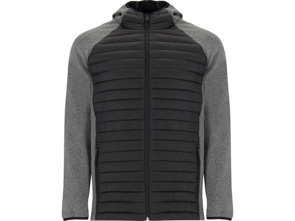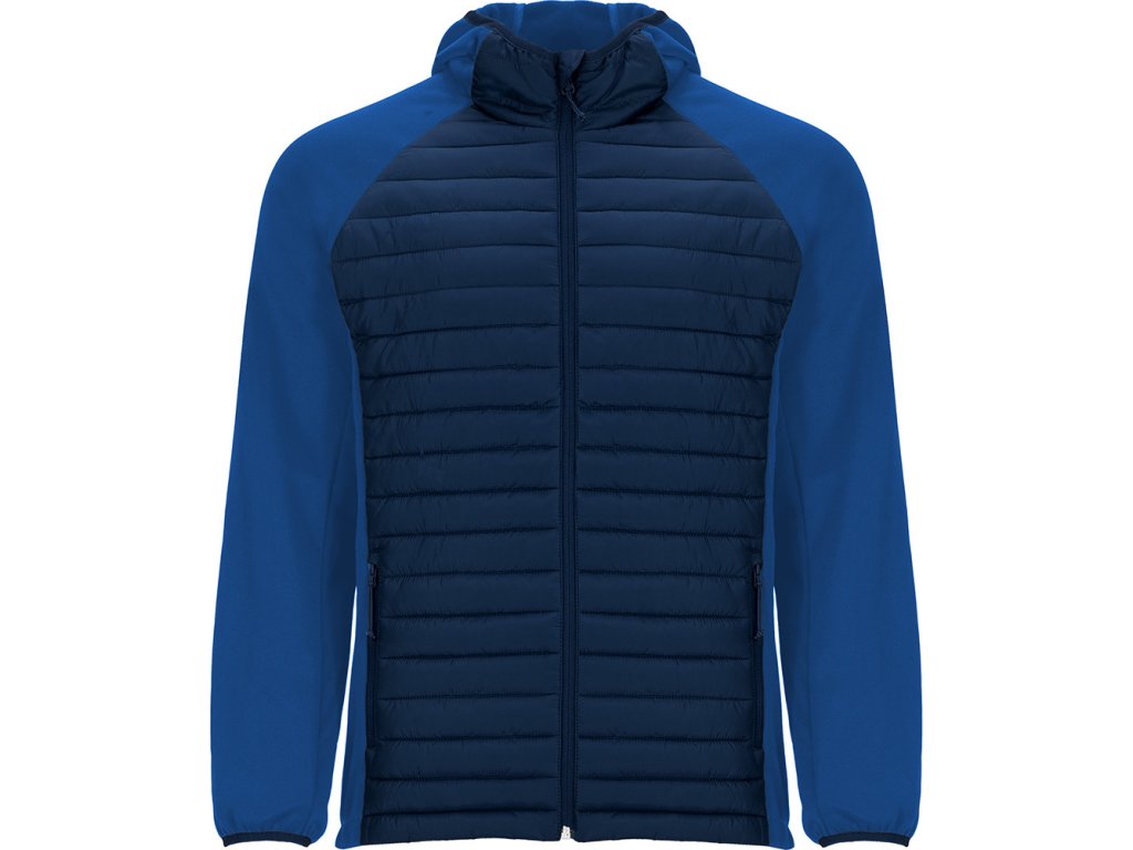 Pánská bunda v kombinaci dvou látek. Napevno přišitá padnoucí kapuce. Rukáv raglánového stylu. Na rukávech, postranních panelech a kapuci látka stylu softshell. Přední a zadní strana z jemné prošívané látky. Obrácený zip v ladící kombinaci s ochranou pro bradu a poutkem. Dvě přední kapsy se zipy. Elastická obruba v ladící kombinaci u krku, na manžetách a spodním lemu. Odnímatelný štítek. Bunda je odolná proti větru.