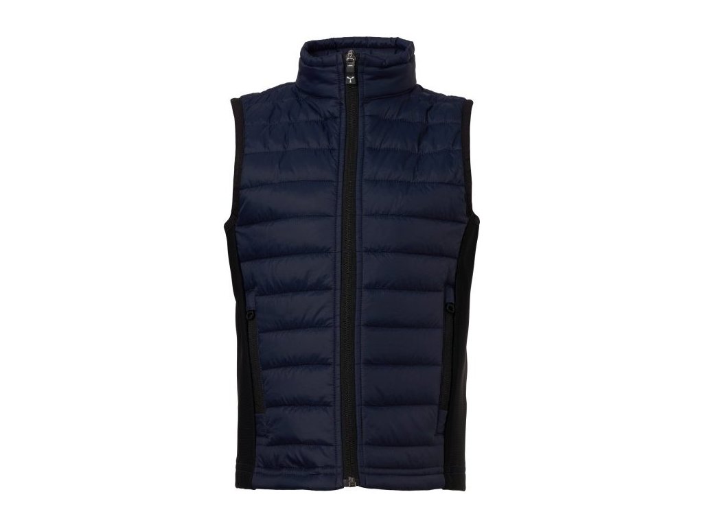 VESTY_IMBOTTITO SENZA MANICHE_Dětská zateplená vesta, soft-shellové boky, zapínání na plastový zip s kovovým jezdcem „semi-auto lock“ a přizpůsobeným taháčkem, dvě boční kapsy na zip.