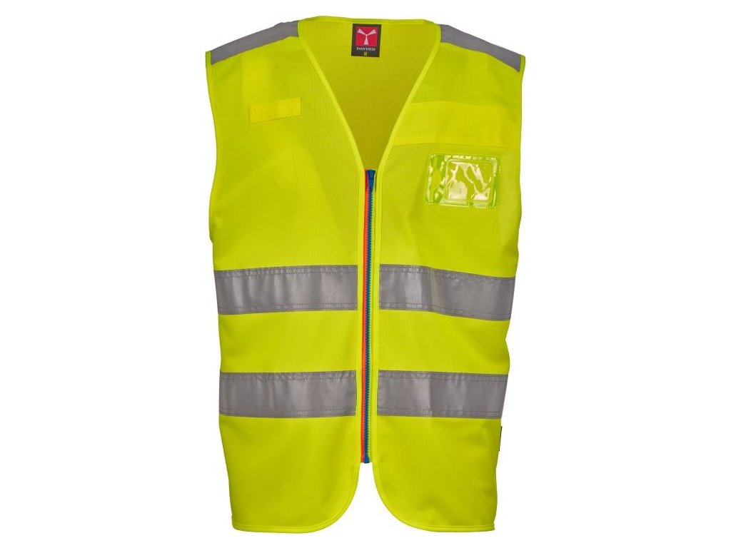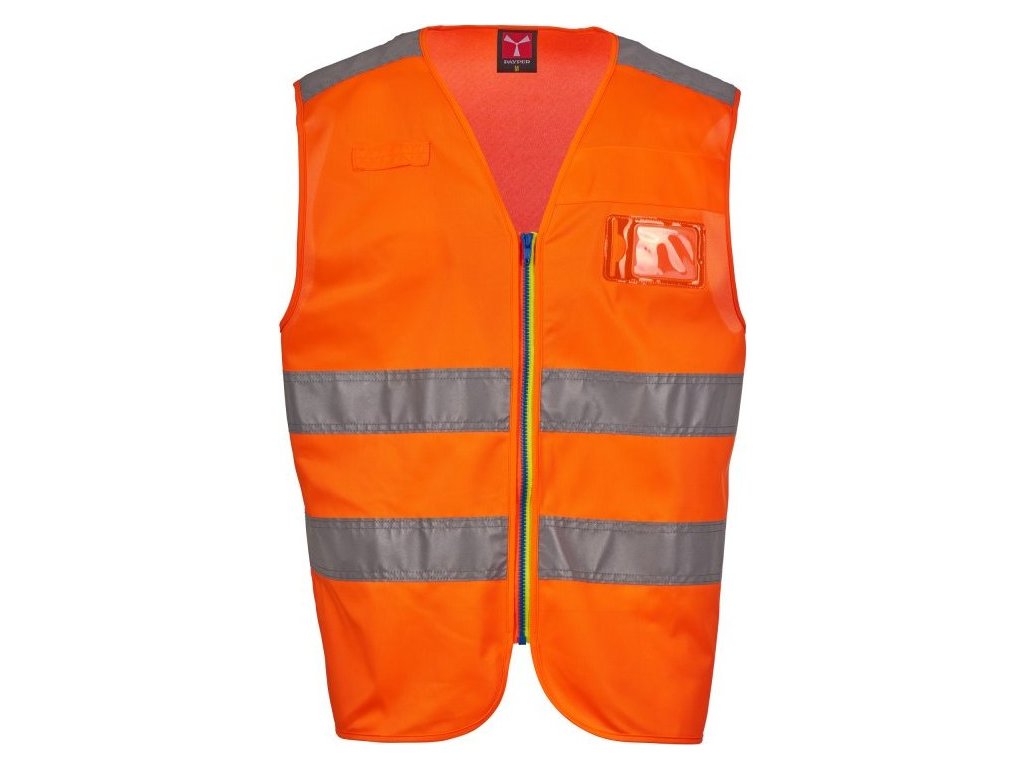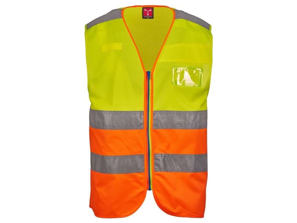VESTY_NO IMBOTTITO SENZA MANICHE_Vesta s vysokou viditelností z dry-tech tkaniny, s reflexními páskami na ramenou a těle. Zapínání na zip, s dvoubarevnou stuhou. Páska pro přizpůsobení a pevné pouzdro na jmenovku na levé straně hrudi při oblečeném oděvu. Multifunkční poutko na pravé straně hrudi při oblečeném oděvu.