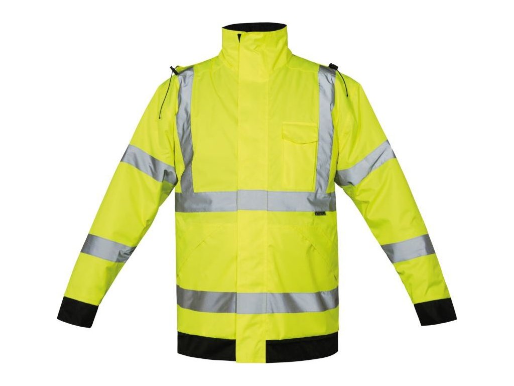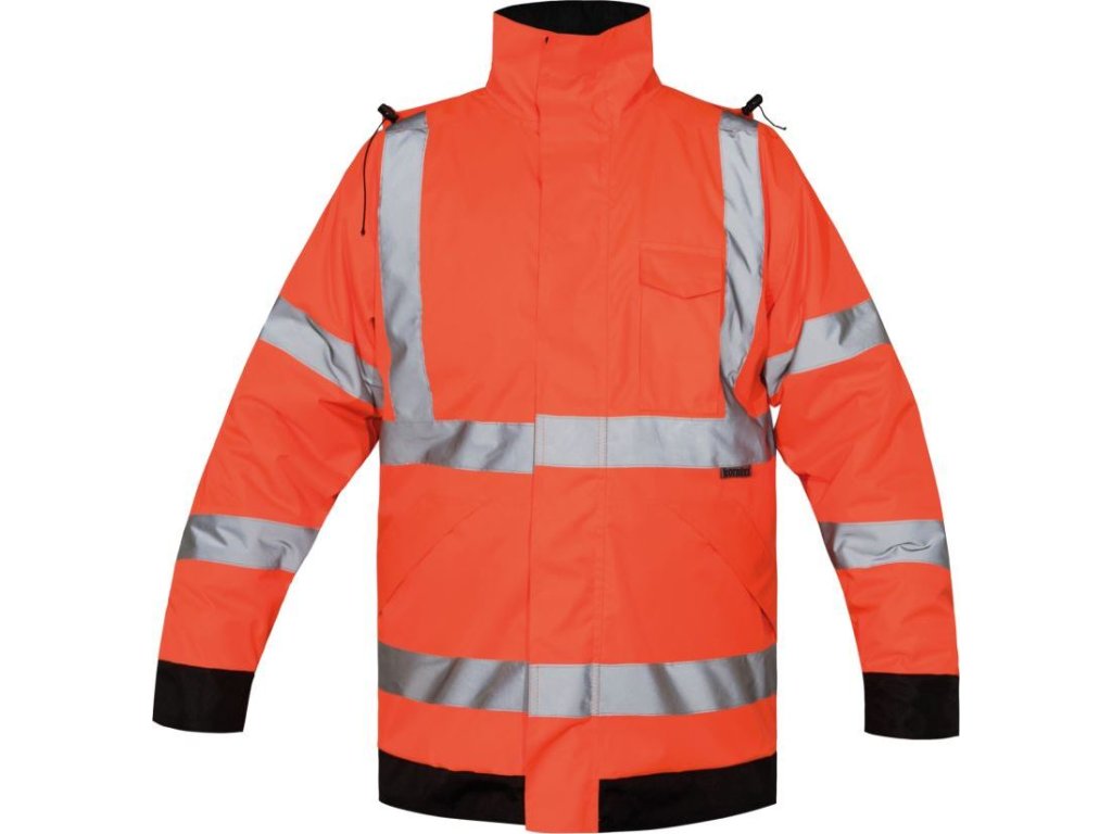 Kapuce v límci, vnitřní manžeta na rukávu, zip s klopou proti větru po celé délce, 2 skryté kapsy s bočním vstupem a zipem, náprsní kapsa se suchým zipem, přístup k zušlechtění v podšívce, oranžová barva odpovídá také GO/RT 3279, certifikováno podle EN ISO 20471 třída 3 a EN 343