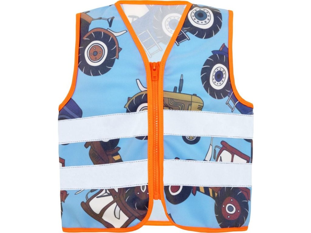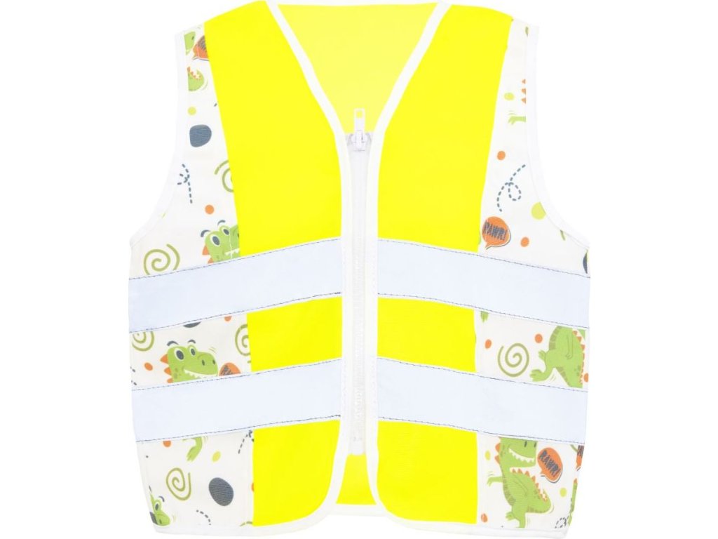 Rozmanité motivy, zip tón v tónu, neon green/ufo, hi vis yellow/t-rex, neon pink/unicorn certifikováno podle EN 17353 Type AB3, blue/tractor certifikováno podle EN 17353 Type B3, vzorovaná tkanina s reflexním povrchem, XXS 3-4 roky, XS 5-7 let, S 8-10 let
