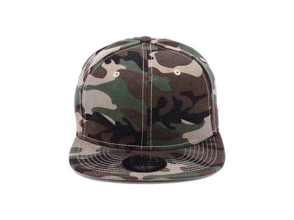Dětská šestipanelová čepice s plochým kšiltem, spodní strana kšiltu je ve stejné barvě čepice a plastovým zapínáním. Čepice má vyztužené čelo, obšité větrací otvory a bavlněný potící pásek.