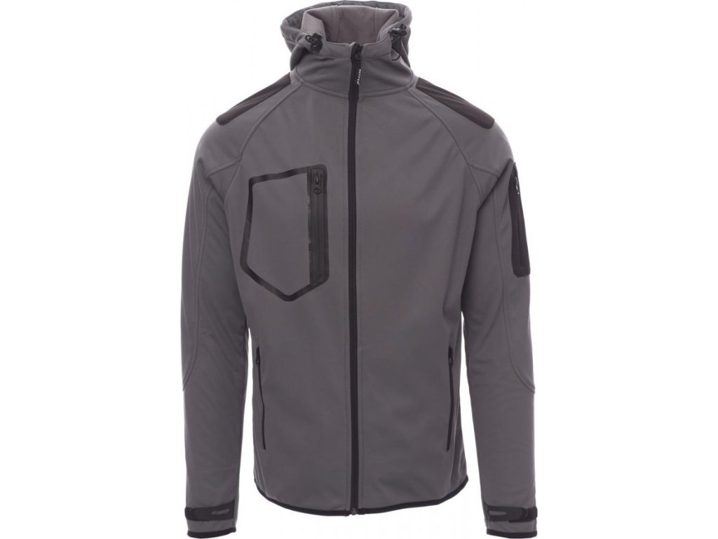 SOFT-SHELL JACKS_NEZATEPLENÁ BUNDA S KAPUCÍ_WP 8000 mm H₂O, WVT 5000 g/m² 24h. Pánská ergonomická bunda, raglánové rukávy, tvarovaná kapuce s dvojitým prošitím a stahovací šňůrkou, utěsněný celozip SBS, stahovací manžety s pogumovanými páskami na zápěstí na suchý zip, tenký lem na zápěstí a v pase, dvě postranní kapsy na zip, jedna kapsa na hrudi a jedna kapsa na levém rukávu.