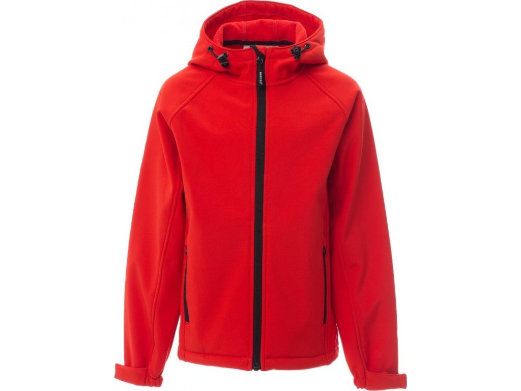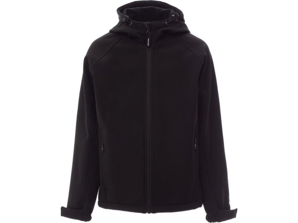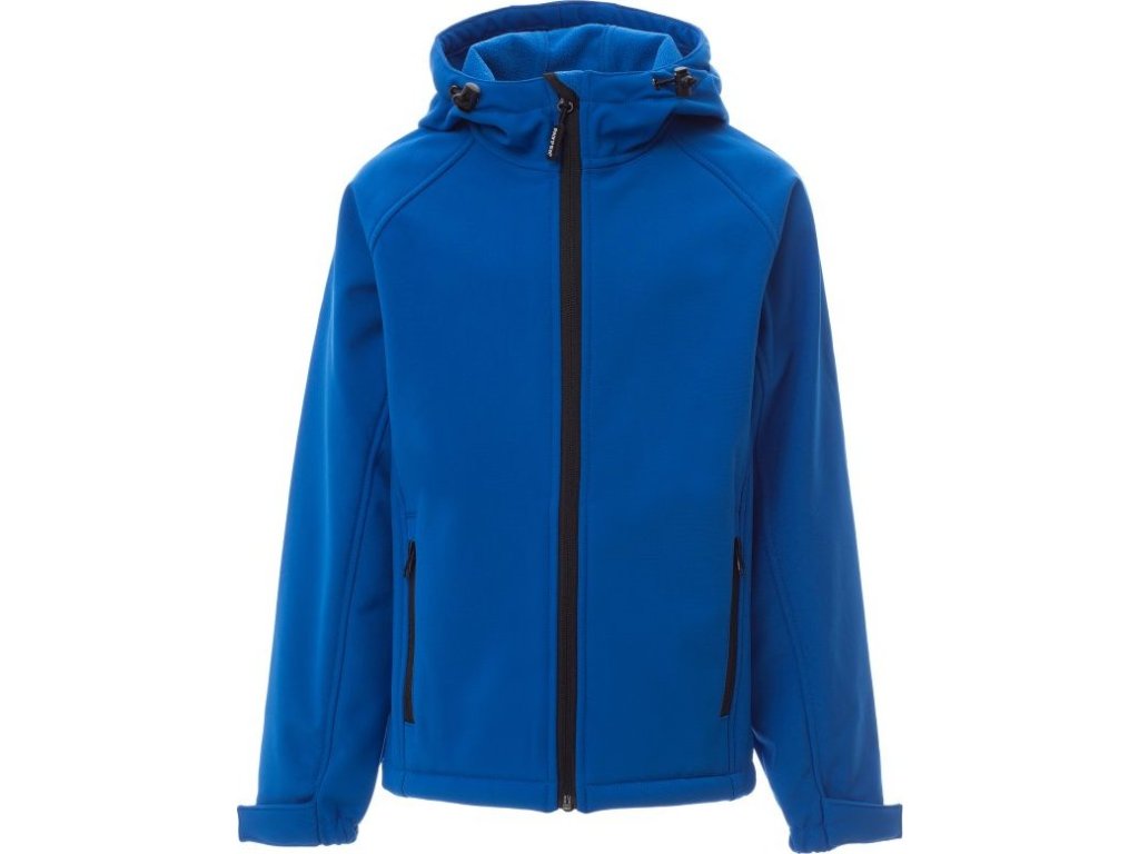 SOFT-SHELL JACKS_NEZATEPLENÁ BUNDA S KAPUCÍ_WP 8000 mm H₂O, WVT 5000 g/m² 24h. Dětská ergonomická bunda, raglánové rukávy, tvarovaná kapuce s dvojitým prošitím a bočními gumičkami. Utěsněný celozip, elastický pásek a stahovací manžety na suchý zip, dvě vnější kapsy na zip.