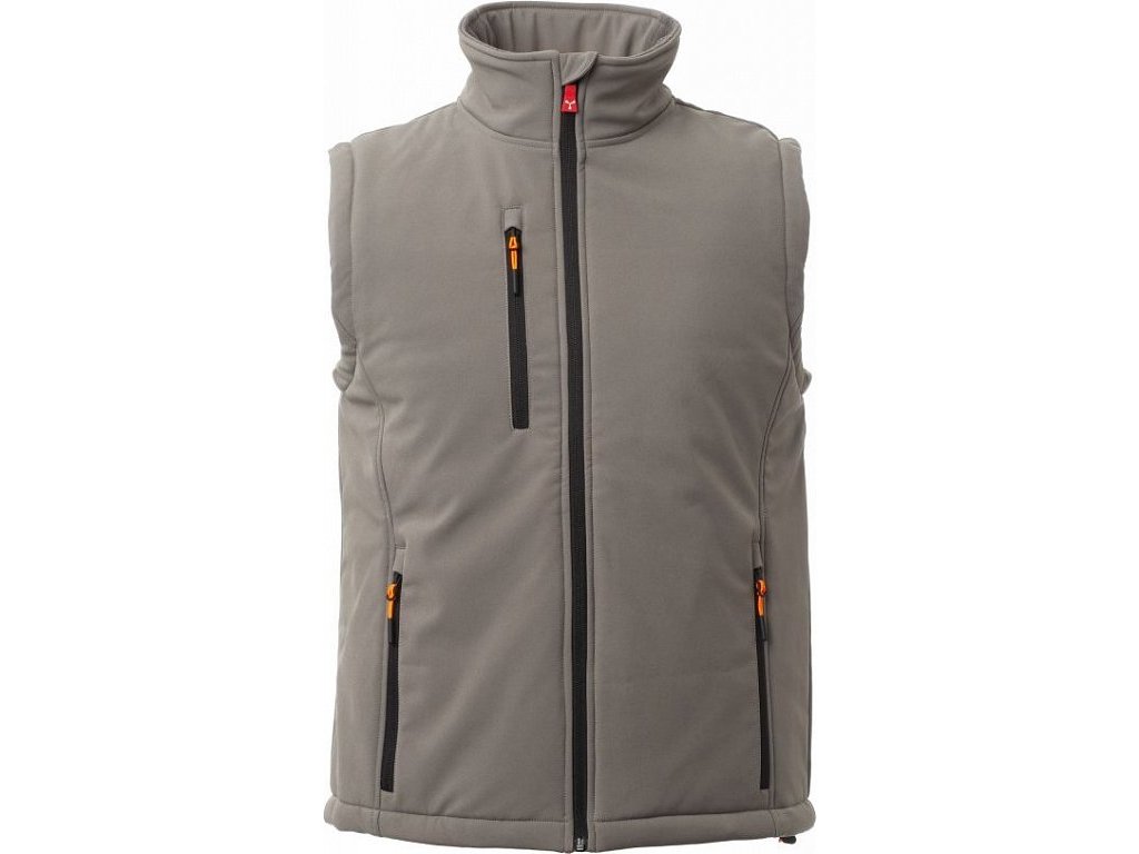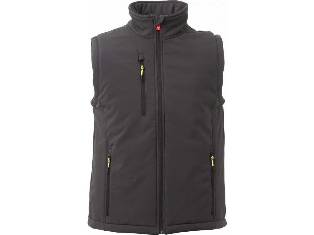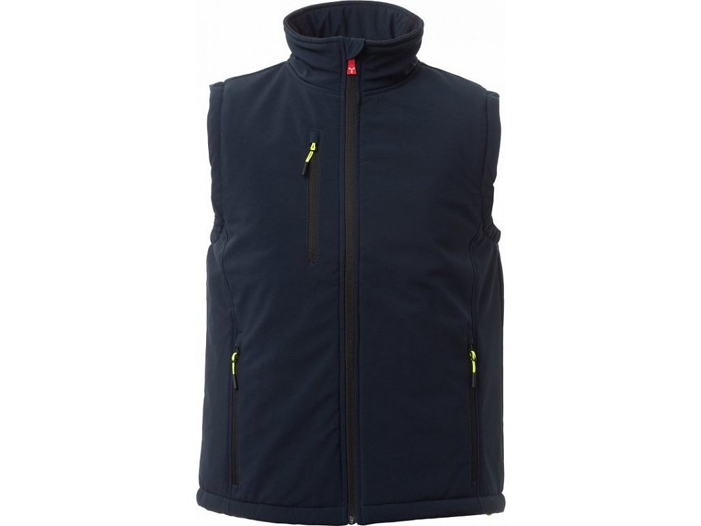 ZATEPLENÉ SOFTSHELLY_IMBOTTITO SENZA MANICHE_WP 8000 mm H₂O, WVT 5000 g/m² 24h. Pánská zateplená softshellová vesta, zapínání na zip s kovovým jezdcem „semi-auto lock“ a přizpůsobeným taháčkem. Dvě boční kapsy a jedna kapsa na hrudi na zip. Fluorescenční taháčky. Dvě vnitřní kapsy: jedna tvarovaná na zip a jedna na tablet se zapínáním na suchý zip. Spodní část stažitelná pomocí přizpůsobených zarážek.
