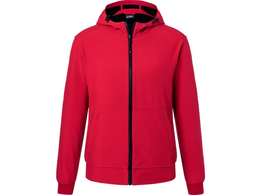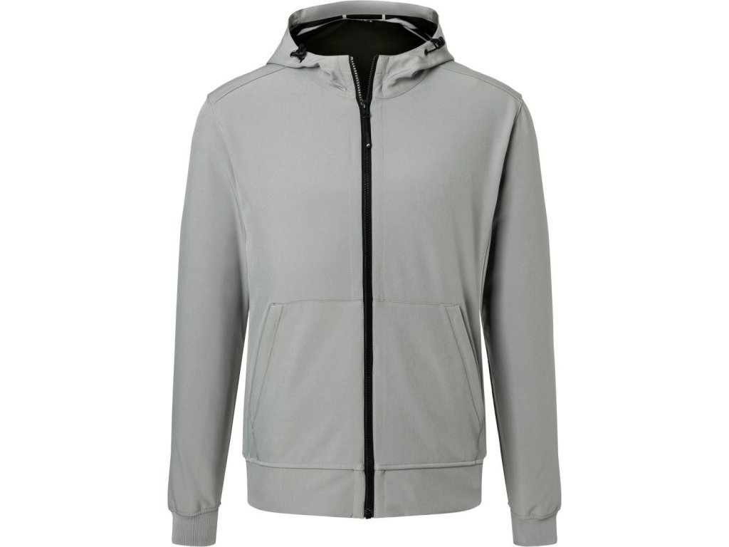 Odpuzující vodu a nečistoty, sestřihnutá kapuce s nastavením šířky, elastický pas a elastické manžety na rukávech, YKK zipy, našitá klokaní kapsa se zipem, 1 vnitřní kapsa, 2-vrstvý softshellový materiál s kontrastní vnitřní stranou v síťovaném vzhledu, pratelné na 30°, šetrné praní, nelze žehlit, nelze sušit v sušičce