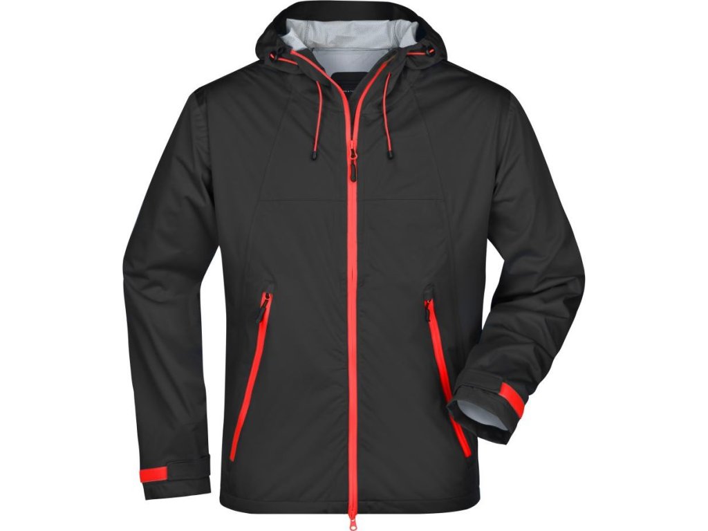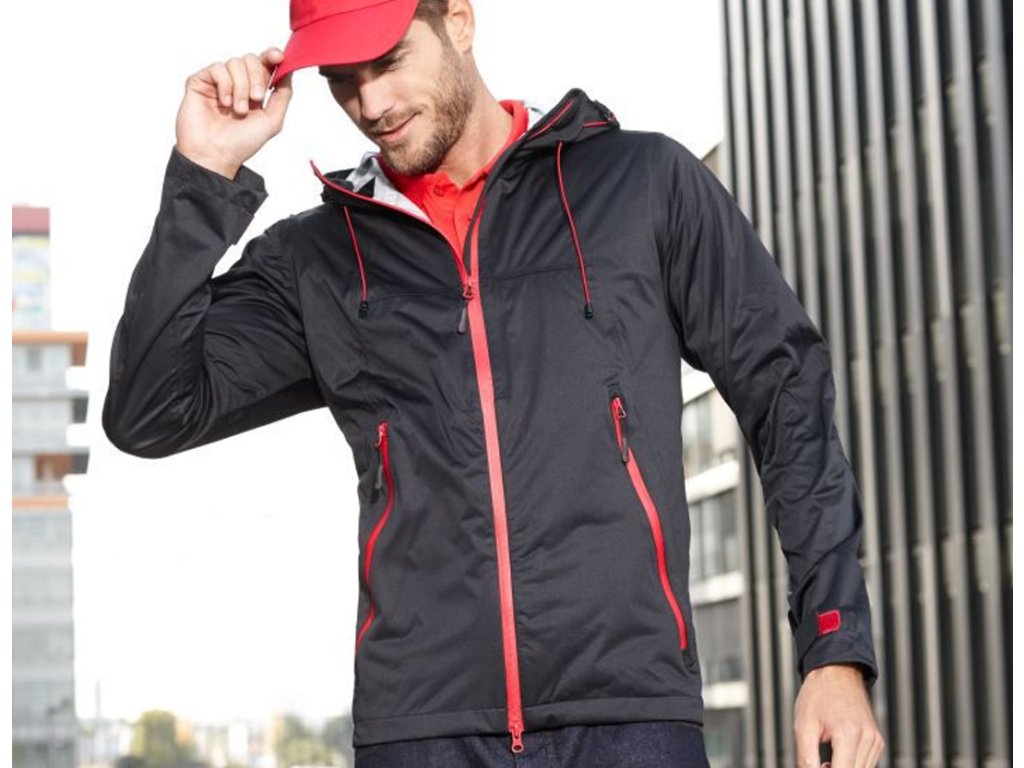 Ergonomický střih s prodlouženými zády, Větruodolná a voděodolná (10.000mm vodní sloupec), vodotěsné zipy, nepromokavá funkční látka s TPU membránou, prodyšné (5.000g/m² za 24h), nastavitelná kapuce, 2-cestný zip, 2 boční kapsy se zipem, podlepené švy, ultralehký, pratelné na 30°, šetrné praní, nelze žehlit, nelze sušit v sušičce