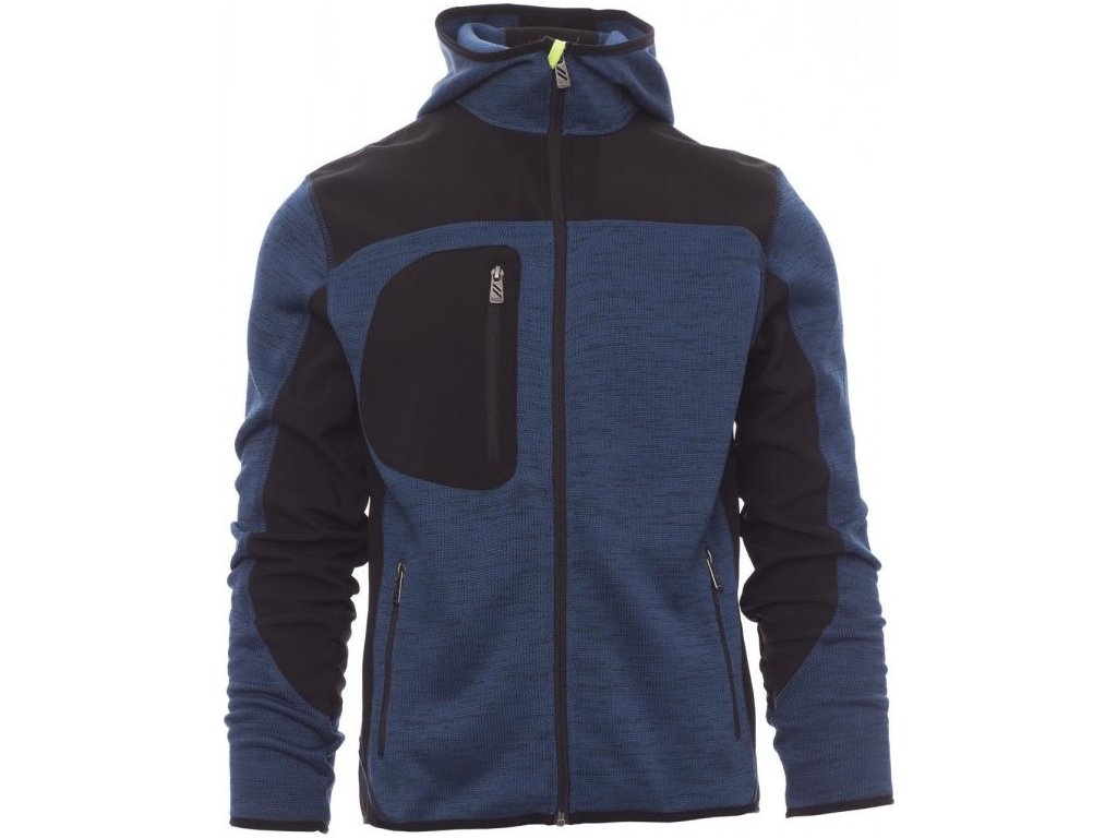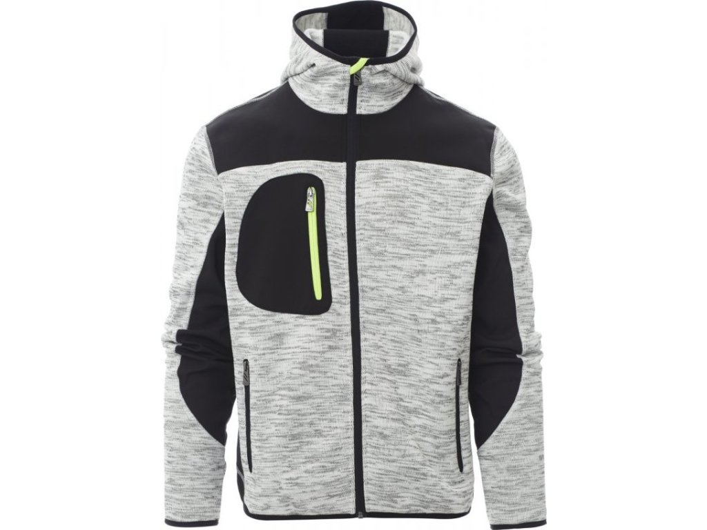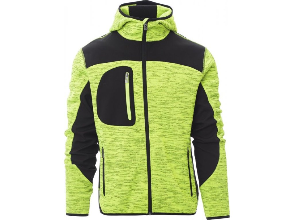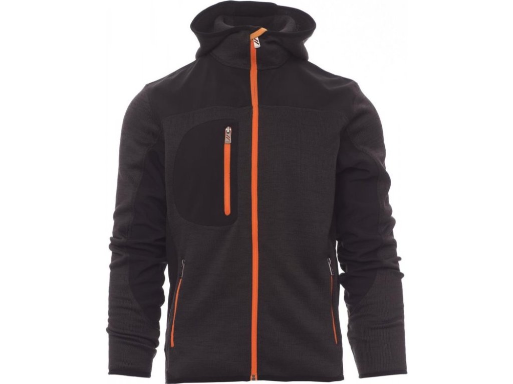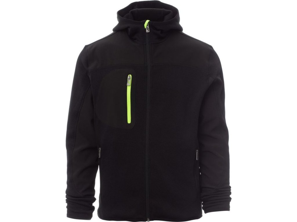 SOFT-SHELL JACKS_NEZATEPLENÁ BUNDA S KAPUCÍ_Technické triko se černého softshellovými vsadkami, dvoubarevná, utěsněný celozip SBS, tvarovaná kapuce s dvojitým prošitím, tenký lem na zápěstí a v pase, dvě postranní kapsy na zip, jedna kapsa na hrudi.