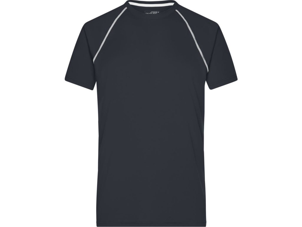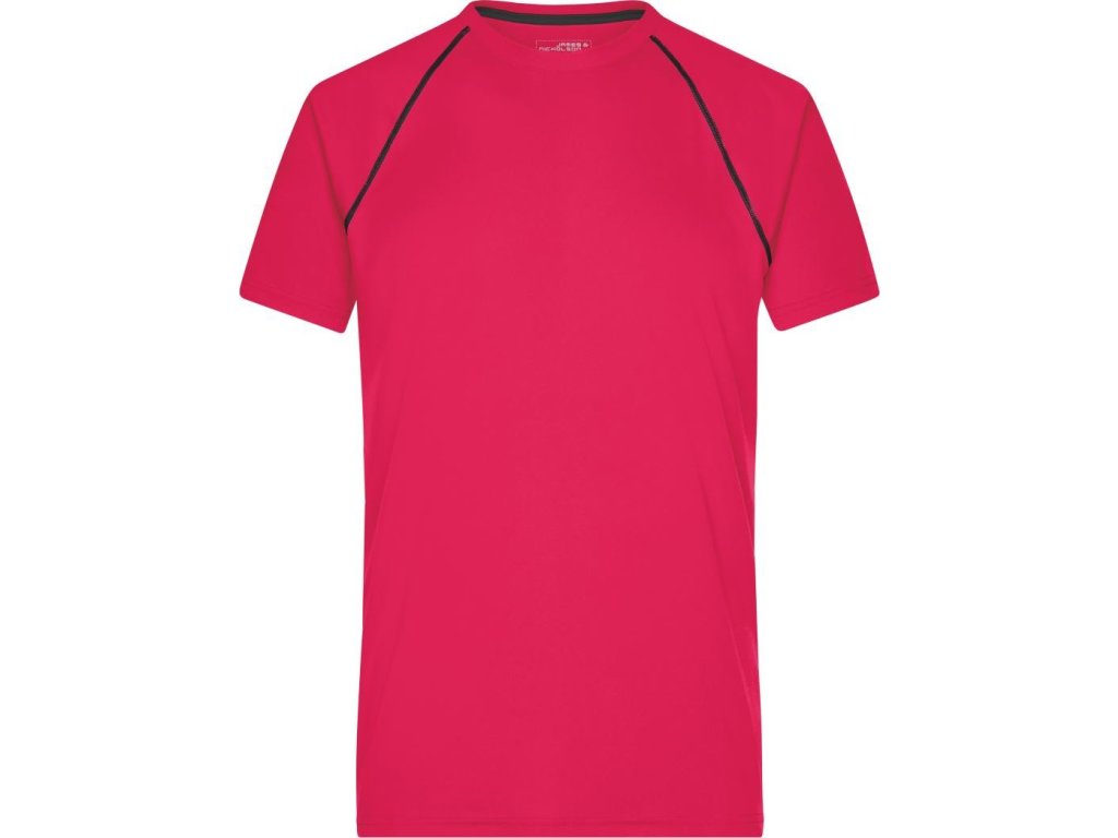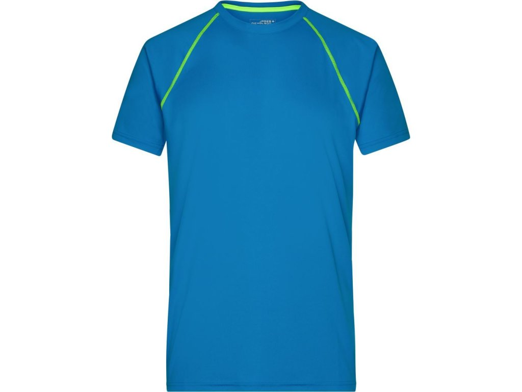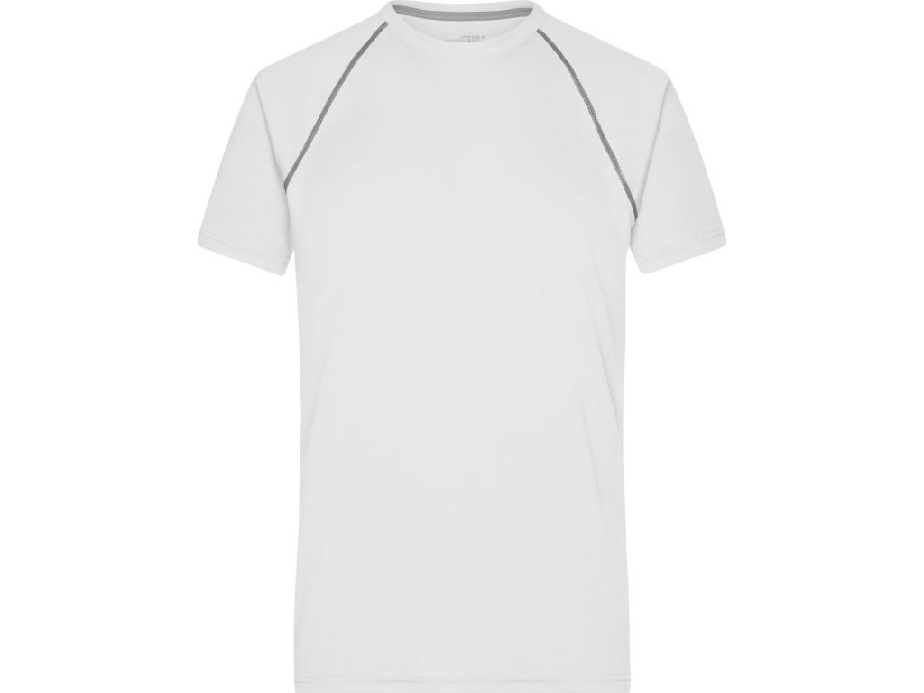 Prodyšný materiál, kulatý výstřih, raglánový rukáv, ploché švy v kontrastní barvě v přední a zadní části, regulující vlhkost, rychleschnoucí, pratelné na 30°, nelze sušit v sušičce