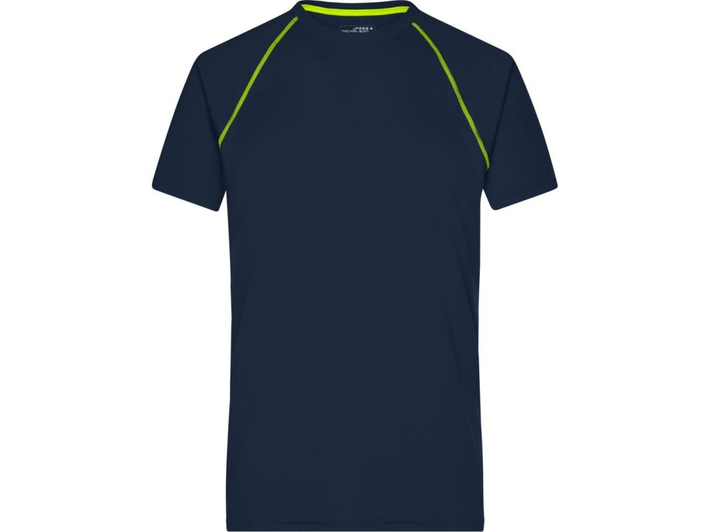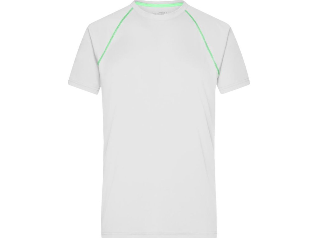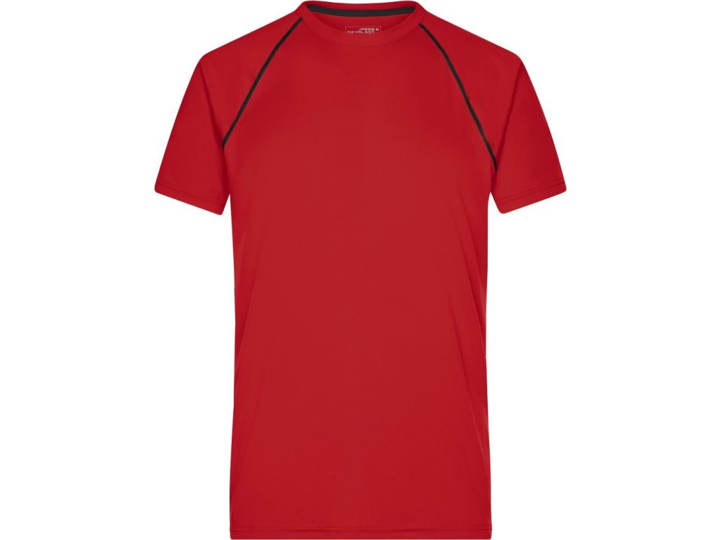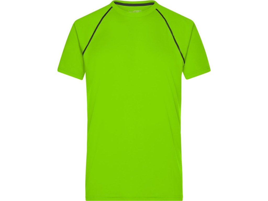 Prodyšný materiál, kulatý výstřih, raglánový rukáv, ploché švy v kontrastní barvě v přední a zadní části, regulující vlhkost, rychleschnoucí, pratelné na 30°, nelze sušit v sušičce