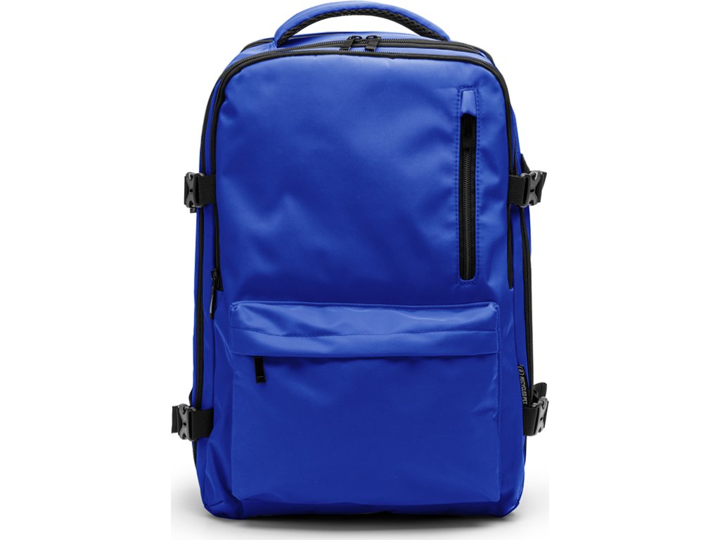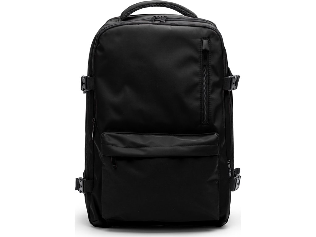 Voděodolný palubní batoh z RPET polyesteru. Prostorná hlavní přihrádka na oblečení a kapsa na 16" notebook. Přední kapsa s voděodolnou podšívkou a zadní bezpečnostní kapsa. Polstrované ramenní popruhy a záda. Popruh na zavazadlo.