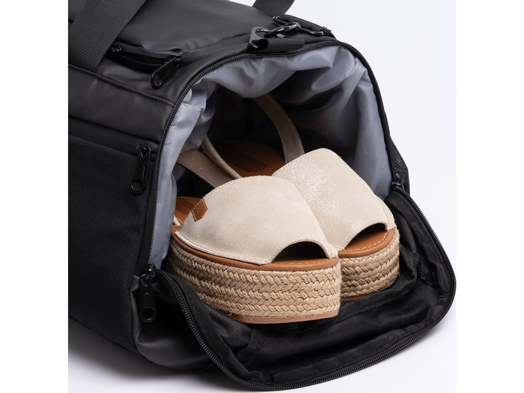 Multifunkční taška vyrobená z PU kůže s prvotřídní a voděodolnou úpravou je ideální volbou pro organizované a bezpečné přenášení vašich věcí. Díky svému elegantnímu a odolnému designu vám poskytne stylovost a funkčnost v každé situaci. Díky velké hlavní přihrádce a polstrované kapse určené pro notebook uvnitř si můžete svá elektronická zařízení bezpečně vzít s sebou. Kromě toho má několik vnějších kapes, které umožňují uložit drobnější předměty tak, aby byly rychle přístupné a byly stále po ruce. Taška také disponuje speciální přihrádkou na boty, která vám umožní oddělit boty od ostatních věcí a mít ve všem pořádek. Všechny přihrádky jsou opatřeny voděodolnými zipy, které zajišťují ochranu vašich věcí v nepříznivých povětrnostních podmínkách. Polstrovaný popruh přes rameno s možností nošení na zádech vám poskytne všestranné a pohodlné možnosti nošení.