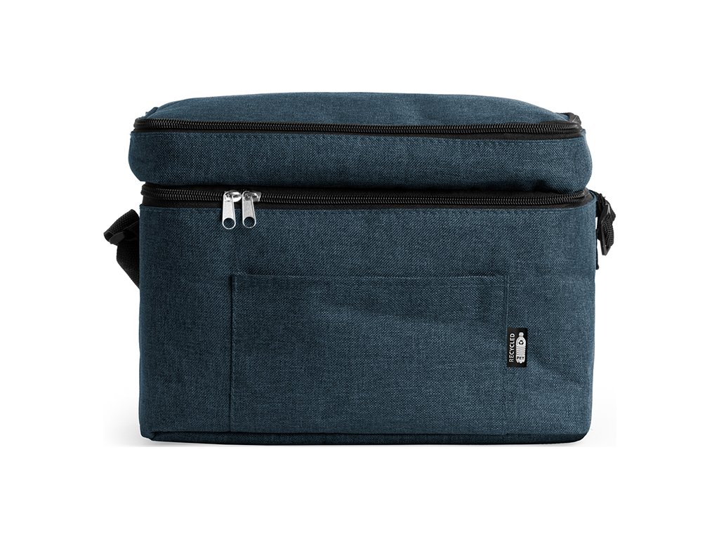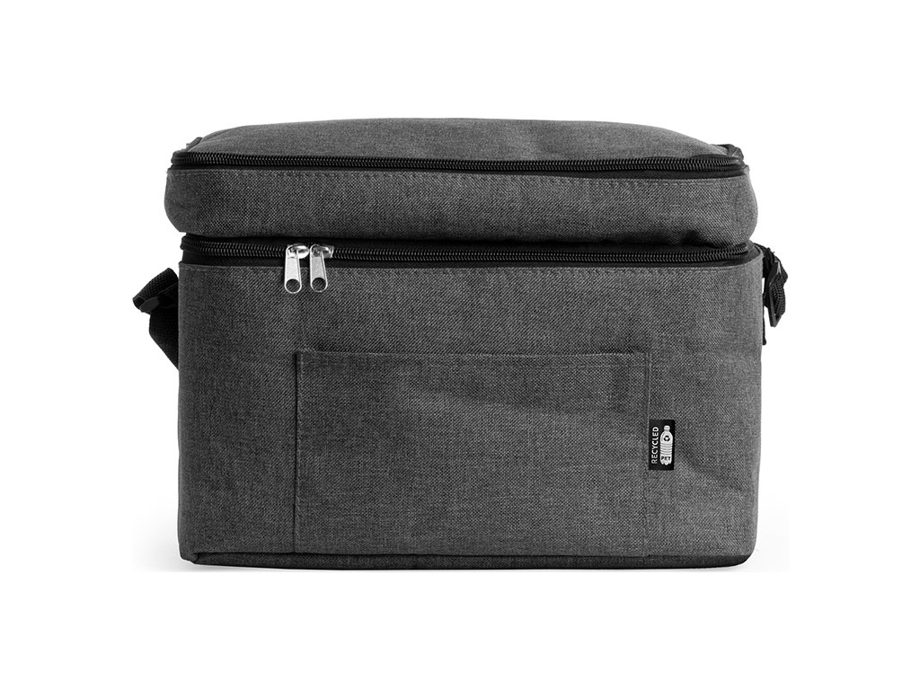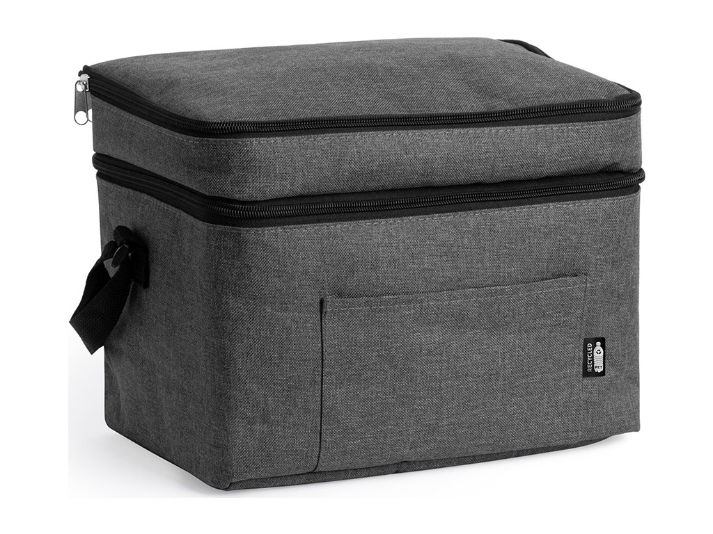 Chladicí taška XL z polyesteru RPET ve vřesovém provedení. Dvojitá přihrádka a přední kapsa. Izotermická podšívka. Součástí je nastavitelný popruh pro přenášení.