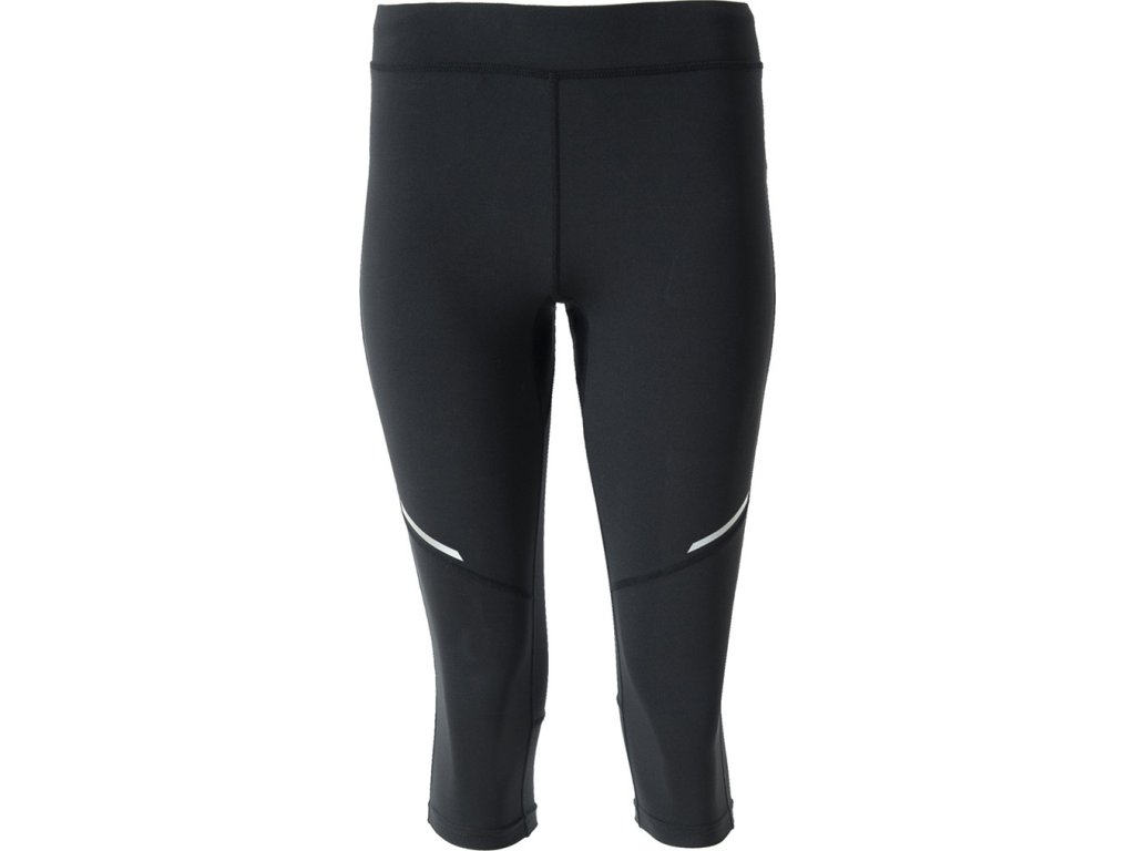 Dámské sportovní legíny do poloviny stehen. Elastický pas s vnitřní stahovací překříženou šňůrkou pro snadnější upevnění. Reflexní detaily. Vnější kapsa na zip na zadní straně.