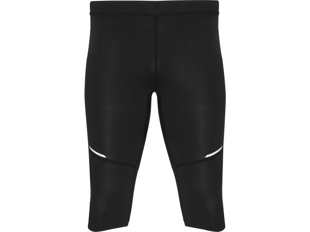Pánské sportovní legíny do poloviny stehen. Elastický pas s vnitřní stahovací překříženou šňůrkou pro snadnější upevnění. Reflexní detaily. Vnější kapsa na zip na zadní straně.