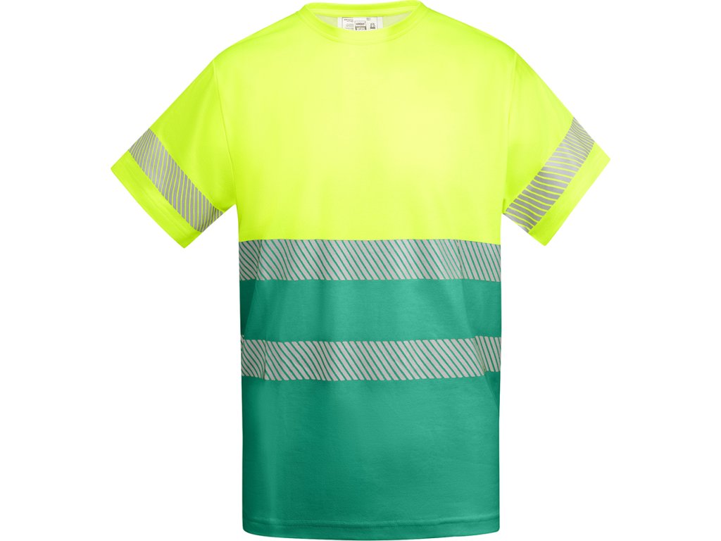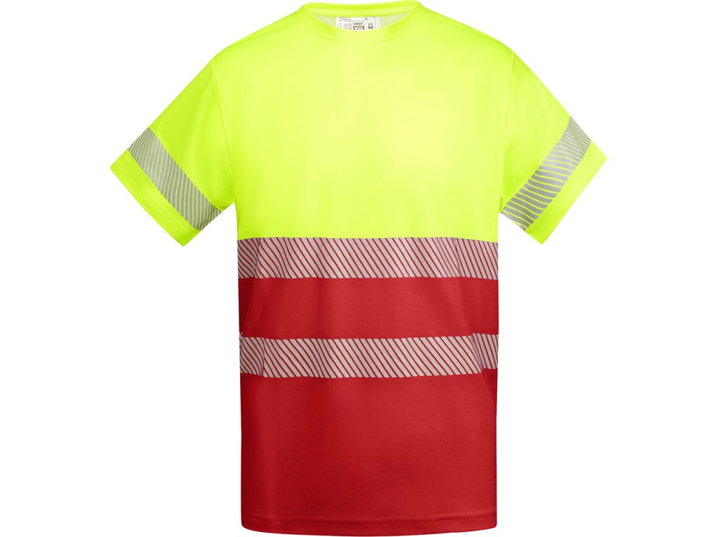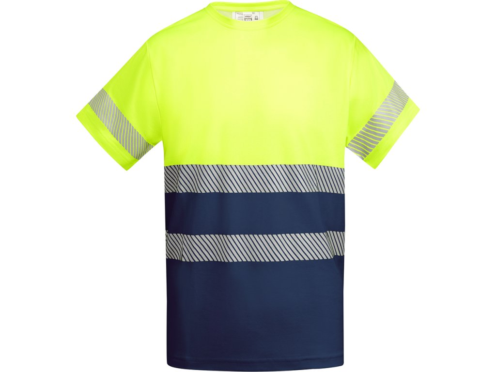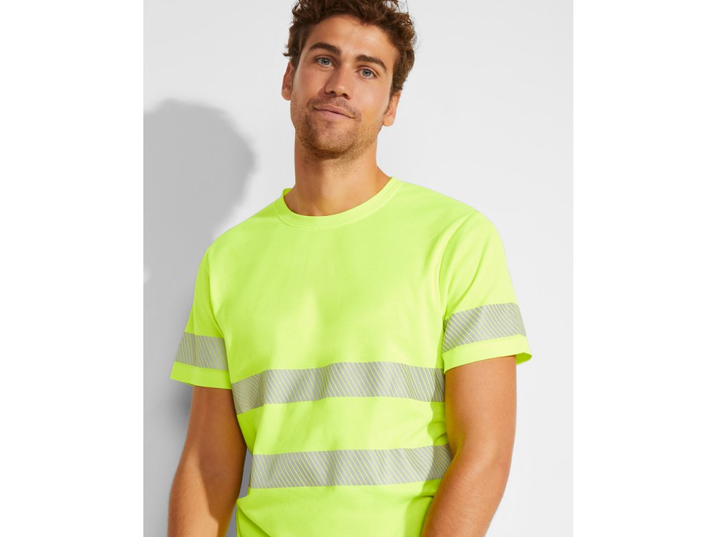 Pánské pracovní tričko s krátkým rukávem a vysokou viditelností. Dva segmentové pruhy s vysokou viditelností na hrudi a jeden na rukávech. Kulatý výstřih z hlavní tkaniny. Pohodlná směsová tkanina z polyesteru a bavlny pro větší prodyšnost.. Certifikace CE podle normy: EN ISO 13688:2013/A1:2021 a EN ISO 20471:2013/A1:2017. Třída I.